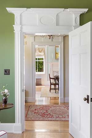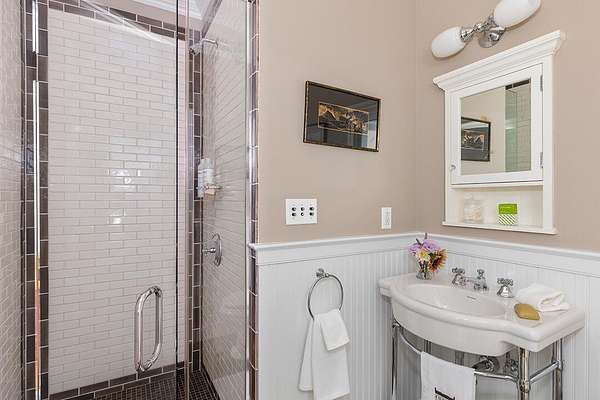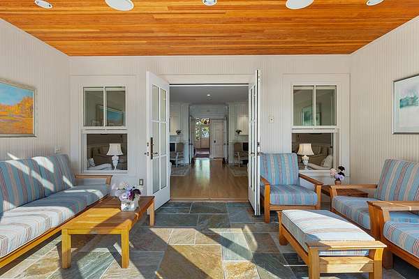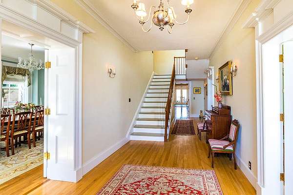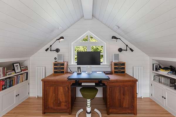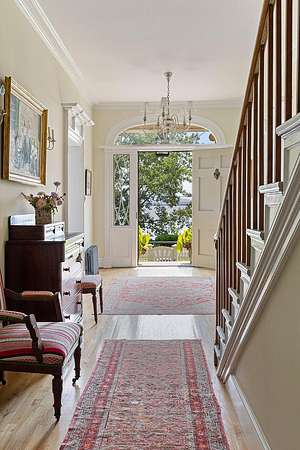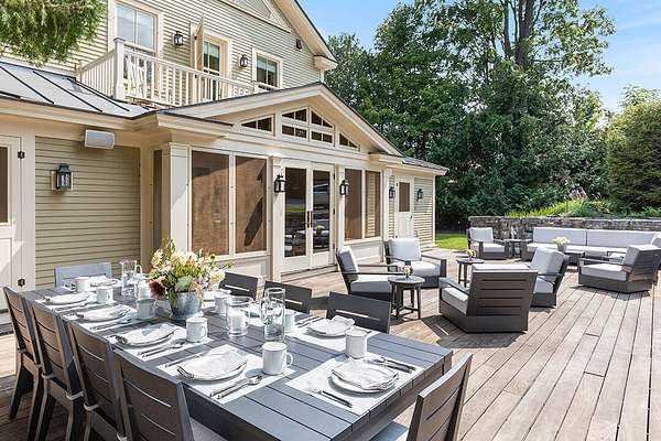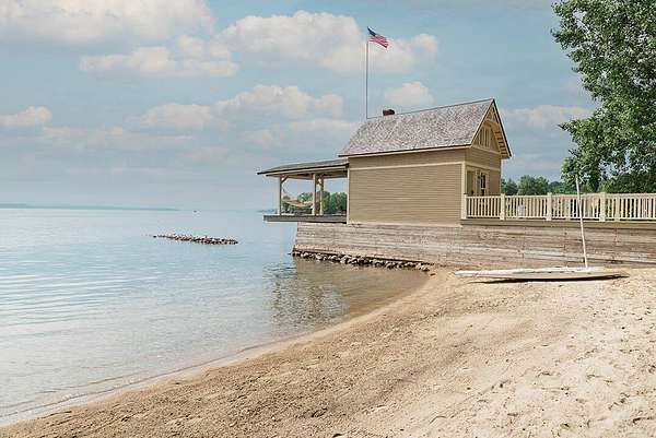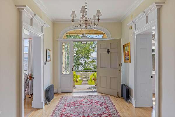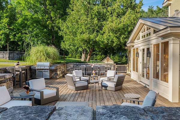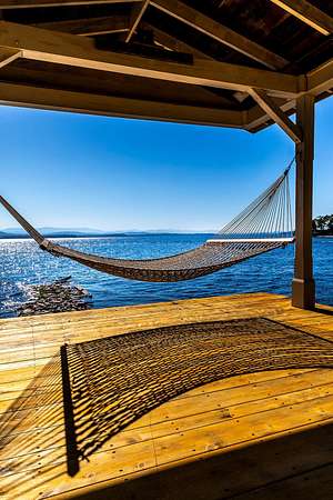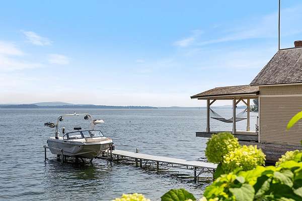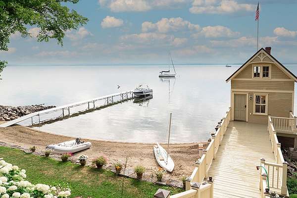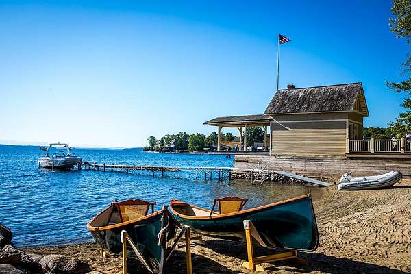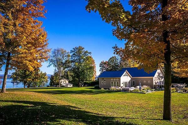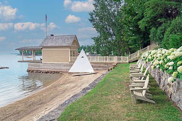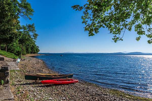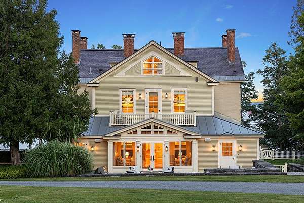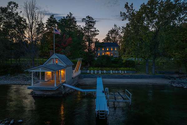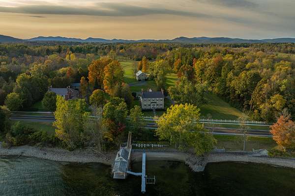 Nestled on 61+ acres along Lake Champlains Adirondack Coast, Rosslyn blends historic charm with modern luxury. This in-town country estate underwent a meticulous 18-year restoration, preserving its circa 1820 Federal/Georgian architecture with Greek Revival elements. The compound encompasses four 19 th century buildings: a six-bedroom, six-bath 6,800 sq ft main home, a large carriage barn, a renovated ice house with full bath and office loft, and an iconic boathouse along 275 feet of landscaped, sandy beach waterfront with grounding panoramic lake and mountain views. In addition, the offering includes a deeded building right for an additional residence. The complete restoration is a marriage of poetry and design between writer and green designer owners. The home retains a rare blend of original post-colonial layout and period-appropriate, bespoke details with non-toxic and FSC certified materials. Rosslyn boasts four finished stories, nine fireplaces, wood and marble floors, a chef's kitchen, radiant heat, a 2,000 bottle wine cellar, fitness room, four private view-filled bedrooms with en-suite baths, and two flex rooms. Outdoor entertainment venues abound with over 3,300 sq ft of furnished decks and terraces. 4+acres of sprawling fenced-in grounds feature an heirloom orchard, perennial flower beds, organic vegetable garden, grapevines, and hand-cut 19 th century local stone walls and terraces. Year round on-property activities include swimming, paddling, gardening, hiking, horseback riding, and cross-country skiing, amidst private waterfront, and nature trails in meadows and woodlands, all in a personal wildlife sanctuary. Located on Merchant Row in historic Essex, NY, Rosslyn is a turn-key oasis, steps away from the idyllic town center, a short ferry ride to Vermont, and 90 minutes from Montreal. Rosslyn offers a once-in-a-lifetime opportunity to own a piece of living history on the nation's 6 th largest lake.