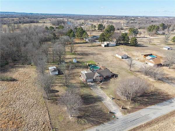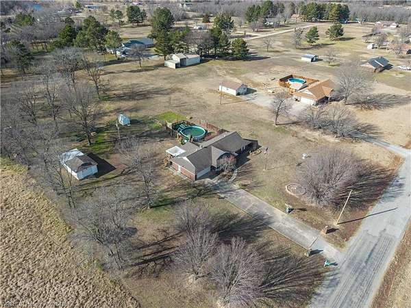 This charming 1,600 SF, 3-bedroom, 2-bath home sits on 2.5 acres in Cameron, OK, just off Highway 112 and only minutes from Poteau. Enjoy the perfect blend of privacy and convenience with room to spread out. The inviting living room features a cozy wood-burning fireplace, while the sunroom offers a relaxing space to enjoy views of the surrounding property year-round. Step outside to an above-ground pool with deck-ideal for summer entertaining. The property also includes a workshop and two additional outbuildings, perfect for storage, hobbies, or small projects. Plenty of space for outdoor living, gardening, or animals-don't miss this great opportunity for peaceful country living with easy access to town.