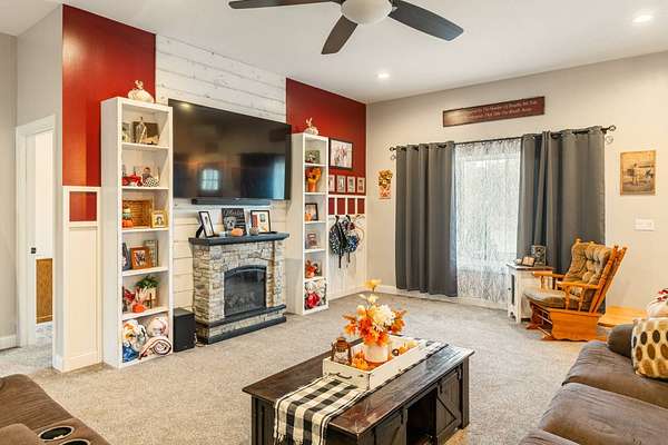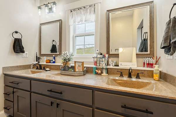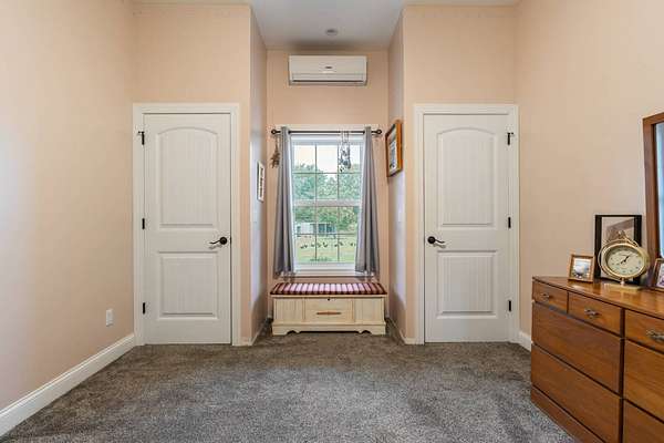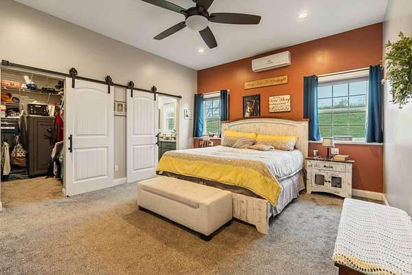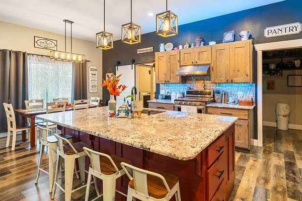 Discover the perfect blend of country charm and modern comfort in this beautifully crafted home situated on approximately 12.5 acres just outside of town. Designed with quality and comfort in mind, this property features durable metal siding and a metal roof, offering appeal and low-maintenance living. Inside, you will be impressed by the kitchen showcasing granite countertops, custom wood cabinetry with soft-close drawers, and premium appliances-including a double oven, full-size refrigerator and freezer, and an under-counter icemaker. The kitchen also includes a lower countertop area, perfect for baking or meal prep, and a touch-activated kitchen sink that adds both style and convenience. A thoughtfully designed pantry offers ample storage and keeps the kitchen organized and efficient. The bathrooms feature Onyx countertops, and the primary suite highlights a custom Onyx walk-in shower. Enjoy comfort year around with high-efficiency mini-split systems featuring five interior zones and two outdoor units providing individualized climate control throughout the home. Also, this home is equipped with radiant floor heating and wheelchair-accessible doorways to ensure ease and accessibility throughout the home. Upstairs, you will find a roughed-in bonus area with a finished ceiling-vanity, door, and a mini-split head that conveys, providing the opportunity for additional living space tailored to your needs. Relax and unwind on the inviting wraparound porch complete with four ceiling fans, the perfect spot to take in peaceful views. This property offers the best of both worlds-a serene country setting with modern amenities, all just minutes from town conveniences. Call Greta for a private showing! More pictures coming soon!