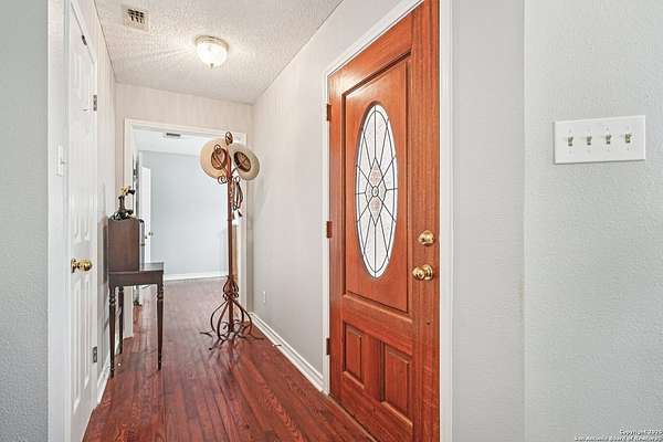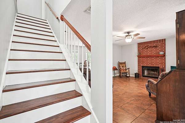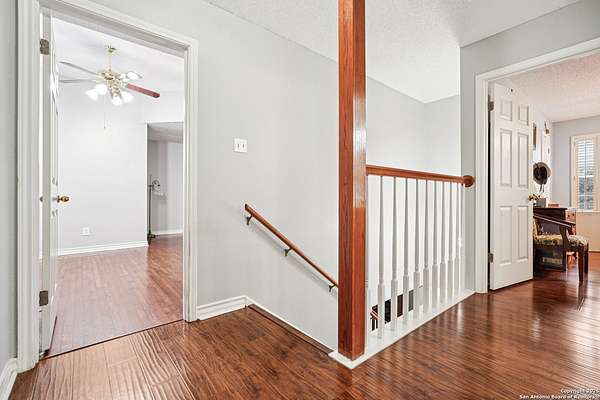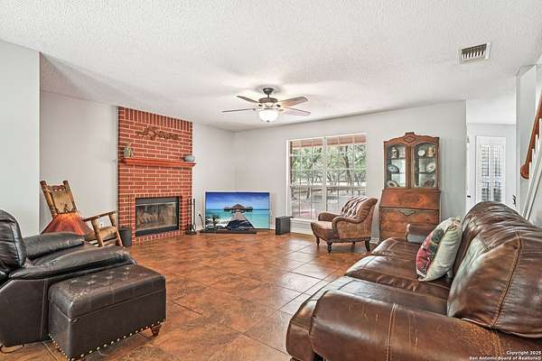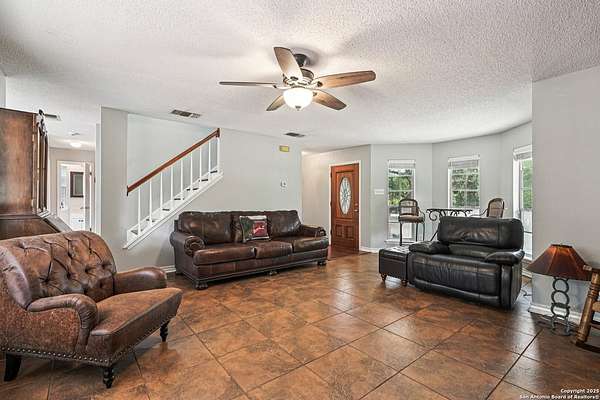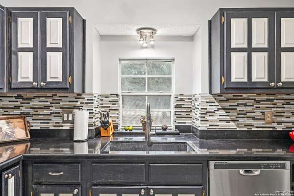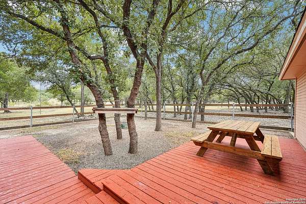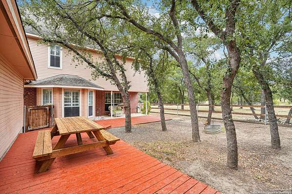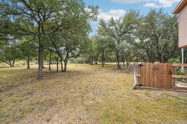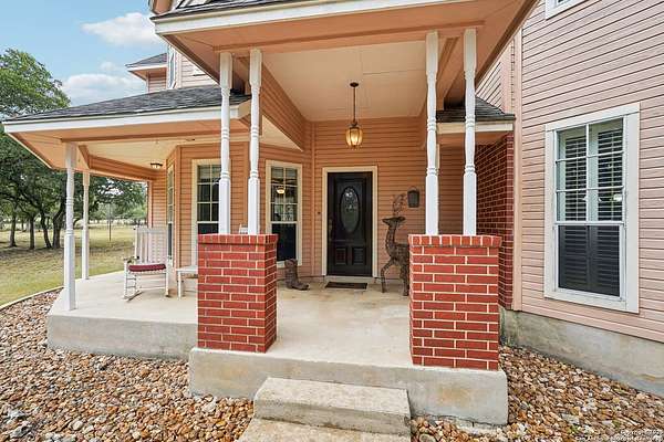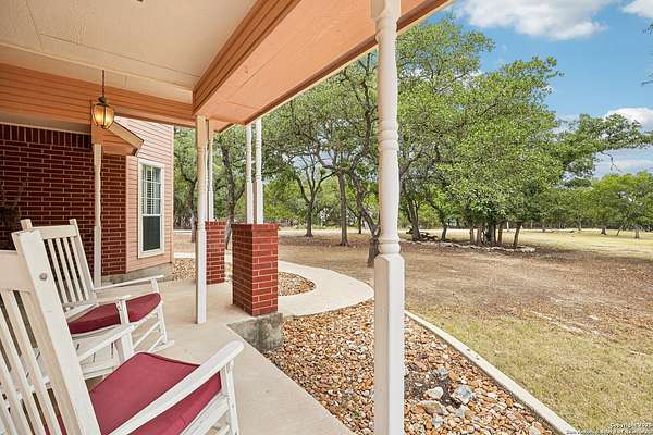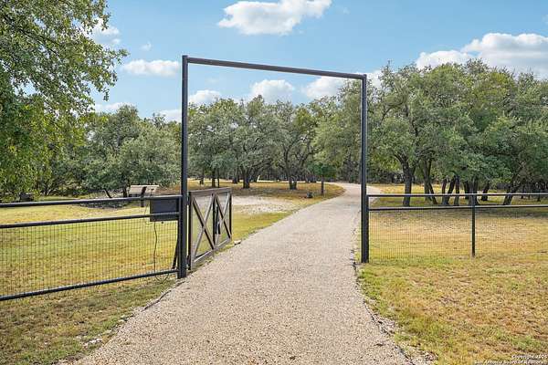 Welcome to this charming two-story farmhouse, nestled on five acres of peaceful country living where axis and white-tail deer abound. Located in the desirable Comal ISD and zoned to Smithson Valley HS, this property offers the perfect blend of rural tranquility and modern convenience. As you enter through the gated entrance, a picturesque tree-lined driveway leads you to the home, offering a serene and private setting. Enjoy your morning coffee or unwind in the evenings on the spacious front and back porches, surrounded by the sights and sounds of nature. Inside, you'll find a freshly painted interior featuring a classic wood staircase that leads to three generously sized bedrooms upstairs. The kitchen is outfitted with modern appliances, and a separate dining room provides ample space for family meals and holiday gatherings. The property boasts a clean, deep water well filtered through layers of limestone rock-eliminating the need for a water bill. The septic system has been recently pumped and is in good condition. Outdoors, much of the cactus and many cedar trees have been cleared, making room for wide-open spaces ideal for outdoor enjoyment, horses (which are allowed), and true country living. The land is fenced and cross-fenced. Additional upgrades include a new driveway and a recently installed electrical box. Located in a quiet subdivision that offers residents exclusive access to a private park along the Guadalupe River, this property provides both recreational and fishing opportunities right in your own neighborhood. Don't miss the chance to make this special Hill Country retreat your forever home!