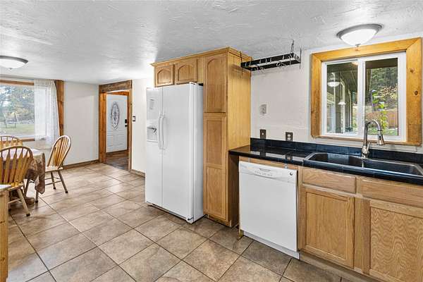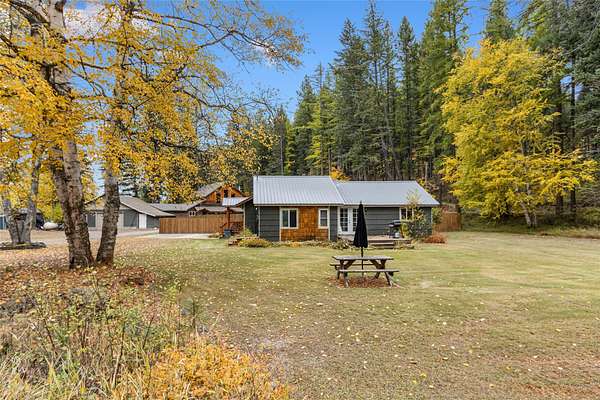 Discover a rare opportunity with two homes on two private acres in beautiful Kalispell! The main home offers 1,519 sq. ft. of comfortable living with 2 bedrooms, vaulted ceilings, a spacious kitchen with island, wood-burning stove, and ample storage throughout. The guest home is approximately 2,132 sq. ft. and features 4 bedrooms, 2.5 bathrooms, a private fenced yard, fire pit, and horseshoe area-perfect for entertaining or rental income. Whether you're looking for multi-generational living, a home with guest accommodations, or an investment opportunity, this property delivers space, flexibility, and privacy just minutes from town.