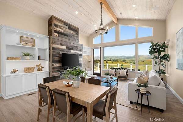 - Beamed Ceilings, Built-In Features, High Ceilings, Living Room Deck Attached, Open Floorplan, Recessed Lighting, Sliding Doors