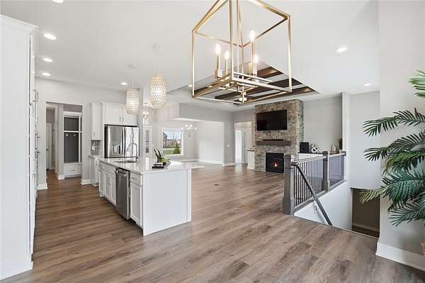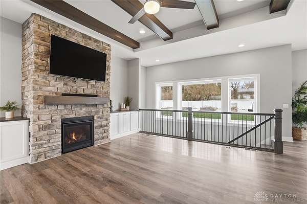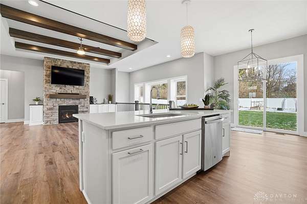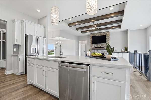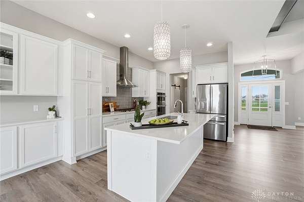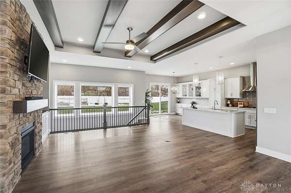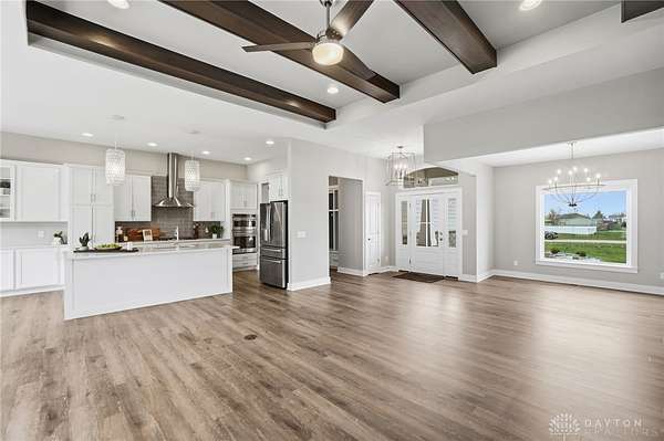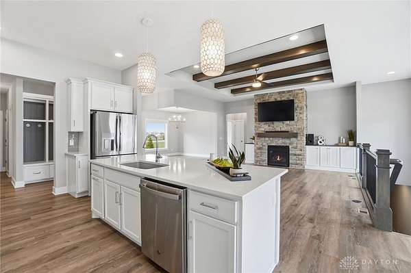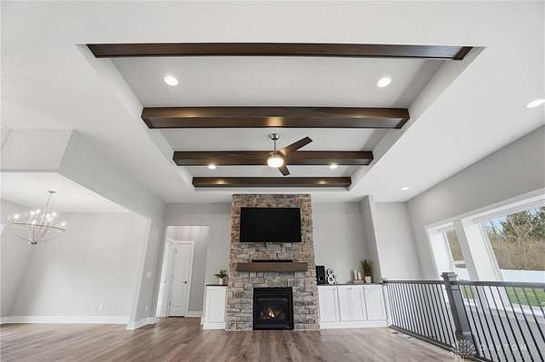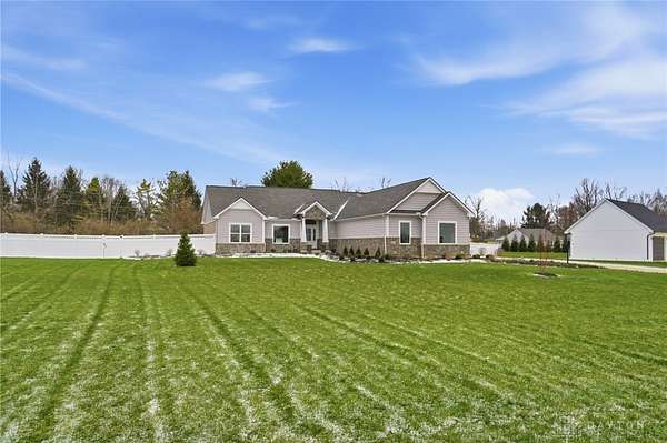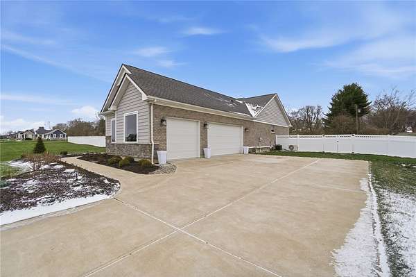 Dreaming of a ranch with space, flexibility, and no HOA? This beautifully designed ranch with a desirable split-bedroom floorplan sits on a scenic 1.78 acre lot, offering the perfect blend of comfort, privacy, and future potential. Inside, you’ll find a spacious and inviting great room featuring stunning stained beams, custom built-ins, and a gas fireplace—creating a warm and elevated focal point for everyday living and entertaining. The open layout flows seamlessly into a well-appointed kitchen offering abundant cabinetry, perfect for both everyday living and hosting. The kitchen is equipped with a gas cooktop, stainless steel vented hood, wall oven and microwave, and a stainless refrigerator. The primary suite is a true retreat, offering a double vanity, private commode, tile shower, and a relaxing soaking tub, and custom California Closets for optimal organization. The finished lower level expands your living space even further, complete with a large recreation room featuring a wet bar rough-in—perfect for future entertaining. You’ll also find a very spacious fourth bedroom with built-ins, ideal for guests, a home office, or multi-generational living. An oversized unfinished storage area provides excellent space for all your storage needs. Step outside and take in the possibilities. The backyard is enhanced with a vinyl privacy fence and offers ample room for outdoor living, gardening, or future additions. Landscape beds and garden boxes are already equipped with irrigation, making maintenance easy. There is also a prime location at the end of the driveway ready for a barn, detached garage, or additional outbuilding. . Car enthusiasts and hobbyists will appreciate the 3-car side-load garage, complete with a mini-split system for year-round comfort. Whether you’re looking for space to grow, room to build, or simply a private retreat with thoughtful upgrades throughout, this property offers a rare combination of quality, functionality, and long-term potential.