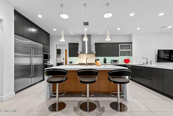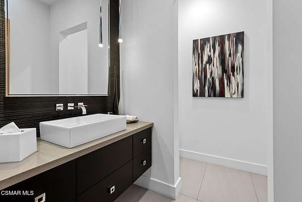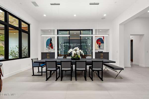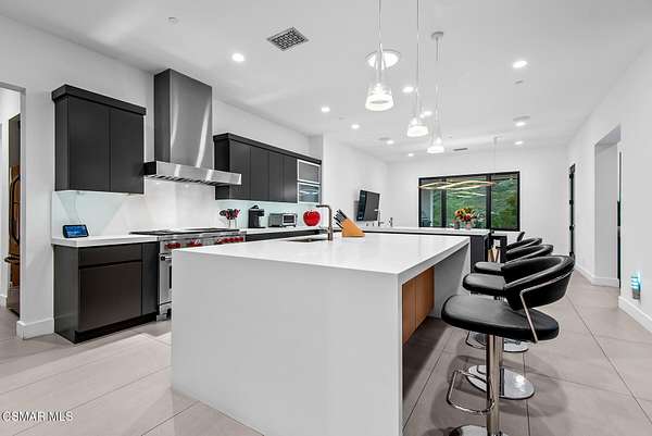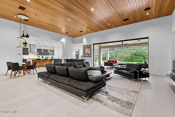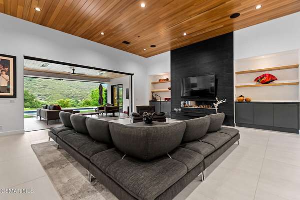 Absolutely extraordinary CUSTOM SINGLE LEVEL contemporary with panoramic views! A VERY rare offering with an ideal location in guard gated Lake Sherwood! Professionally designed and masterfully built to perfection! Features of this open concept masterpiece include a screening room/office, true formal dining room with temperature controlled wine wall and a breathtaking 'Great room' enhanced by Fleetwood pocket doors, custom wood ceilings and a floor to ceiling fireplace with tiles imported from Japan. The beautiful center island kitchen is graced with top of the line appliances and opens seamlessly to the 'great room'. There is also a centrally located walk in wet bar with large custom fold away windows. The exquisite Primary is second to none and provides TWO separate attached bathrooms and two large finished closets. The resort quality grounds are simply remarkable! Enjoy the custom pool and spa, firepit, barbecue center, an abundance of lush manicured lawns and a remarkable covered outdoor living room all with complete privacy and stellar views of the Golf course and surrounding mountains! Other important and thoughtful amenities include a FIVE car garage, solar system, smart home and a generator. This remarkably designed home is built with timeless finishes and is an absolute one of one! Nothing else compares!