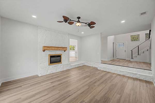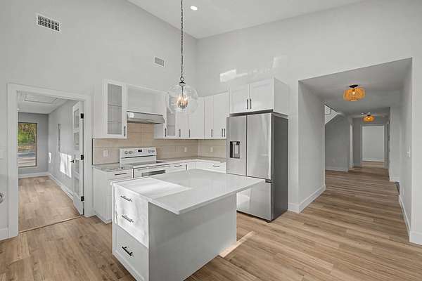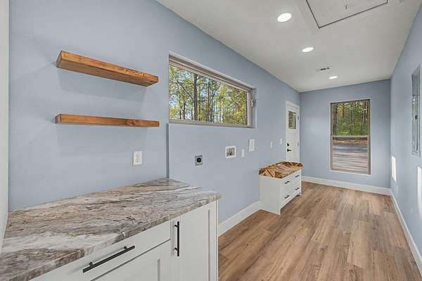 - Ceiling Beamed, Ceiling Vaulted, Fireplace, Kitchen Island, Lighting Recessed, Newly Painted, Pantry, Shelving, Split Bedroom, Washer/Dryer Hookup