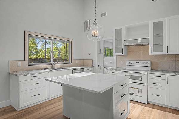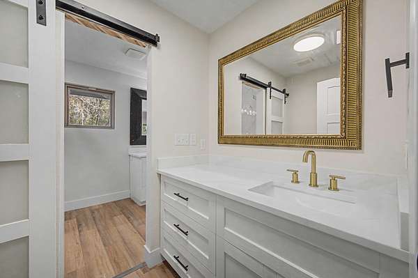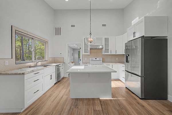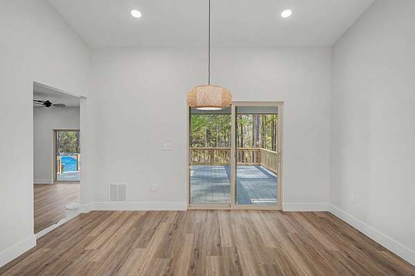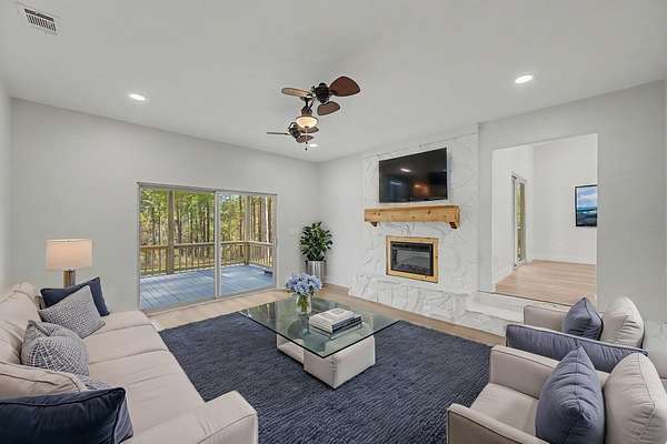 Welcome to your private estate in Crestview-nestled on 2 acres and set back nearly a quarter mile for ultimate privacy. Completely rebuilt from the ground up in 2024, everything is brand new as of 2024: 2024 windows, 2024 doors, 2024 Hardie board siding, 2024 roof, 2024 plumbing, 2024 electrical, 2024 insulation, 2024 HVAC systems, 2024 pool liner, kitchen, appliances, and bathrooms--even utility connections. Enjoy a large swimming pool, 550+ sq ft of decking, and a paved circular driveway with room for a future six-car garage. Inside features coastal-inspired design with shiplap, quartz countertops, tiled walk-in showers, designer fixtures, and light sandy oak LVP flooring. Fully permitted 2024 rebuild. This is essentially a new construction home with the charm of an established setting.