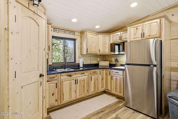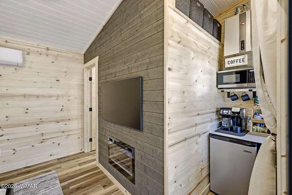 Rare opportunity to own 2.05 acres featuring two homes, the main home was built in 2024, and the casita in 2025! The main home offers 529 sq ft of thoughtfully designed living space with vaulted ceilings and beautiful rustic finishes throughout. Enjoy knotty pine wall accents and custom peel pole log railing details that create a warm, inviting feel. A tankless water heater adds modern efficiency and convenience. A charming path leads to the 192 sq ft casita, built in 2025--perfect for guests, rental income, or a private retreat. Both homes feature durable metal roofs for long-lasting quality and low maintenance. This property is fully equipped for modern living and outdoor enjoyment, including an RV hookup, EV hookup for your electric vehicle, and a cozy fire pit. Offered fully furnished and truly turn-key, this property is ready for immediate enjoyment or investment. Situated on 2.05 acres with plenty of room to expand or relax and take in the peaceful surroundings, this one-of-a-kind property offers versatility, charm, and endless potential--must see!