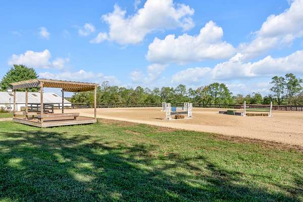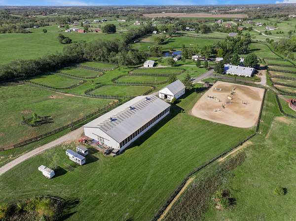 Discover this exceptional equestrian estate! Featuring four barns with a total of 49 stalls and spanning 46.45 acres, this property is ideal for professional horse enthusiasts. It offers a spacious 250'x125' outdoor arena and a 140'x72' indoor arena, both equipped with GGT footing. These arenas are irrigated using two water reclamation ponds. The two primary barns have been recently updated with new roofs, siding, and electrical systems. Additionally, there is an 80-foot round pen with Poly-Track footing. The property includes 11 grass paddocks and three large fields, perfect for retired horses and riding activities. The main residence, a 4-bedroom, 3-bathroom house, underwent a complete renovation in 2017, featuring beautiful oak wood flooring throughout and a chef's kitchen with high-quality stainless steel appliances, quartz countertops, and a tiled backsplash. The bathrooms are fitted with designer vanities, tiles, and fixtures. There are also one additional residences on the property: a 2-bedroom, 2-bathroom home, ideal for farm management or as guest accommodations.