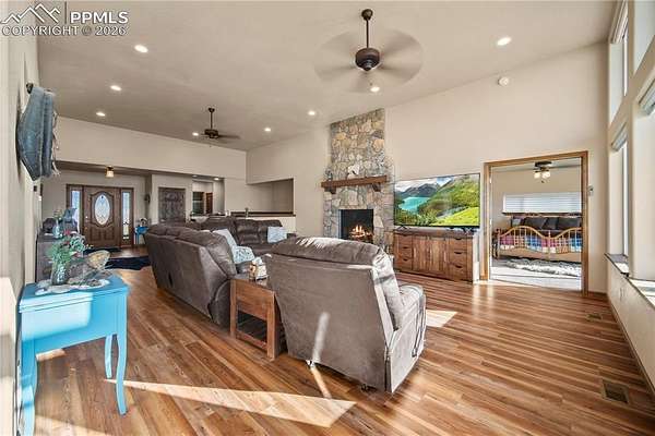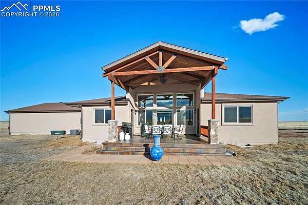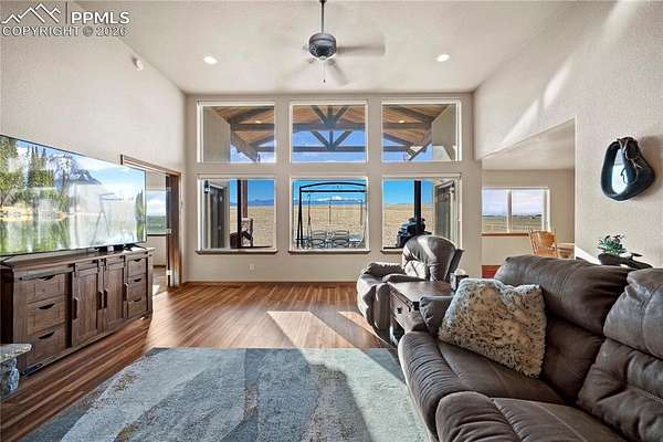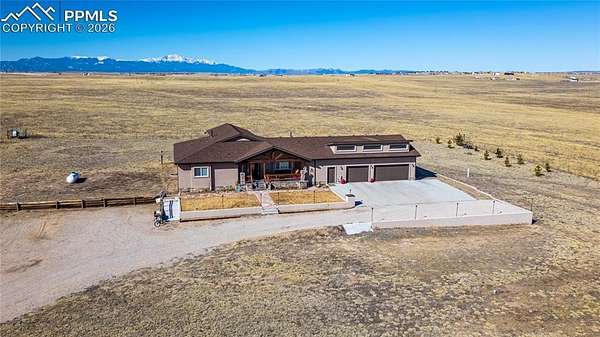 Ever dreamed of living the homesteader lifestyle without giving up modern comforts? Picture this: 40 acres of pure bliss, complete with everything you need for farming and animal care. Three loafing sheds, pens, fencing, and corrals-all stay! There's also a spacious hay barn for your farming needs and a 32x70 barn (with power) that's ready to adapt to whatever you envision. To top it off, you have access to the mother of all wells: a livestock well and a seasonal pond for added convenience. Grow your own fresh veggies in the greenhouse and enjoy five strategically placed water spigots throughout the property. Inside the home, you'll be greeted by floor-to-ceiling windows offering panoramic mountain views that will take your breath away, alongside a great room with a stately stone fireplace. After a rewarding day of homesteading, retreat to your gourmet kitchen and expansive walk-in pantry-where even the toughest homesteader can feel like a five-star chef. Choose between the formal dining room or a cozy breakfast nook for entertaining. The primary suite offers direct access to the back patio, a soaking tub, a large shower, and a walk-in closet that will exceed your expectations. The main-level laundry room features a convenient wash station and abundant counter space-perfect for tackling any task. Head downstairs to find three more bedrooms, two bathrooms, and a spacious family room complete with a wet bar. The oversized, three-car garage provides ample space for your toys and a work area with an added bonus, the roof is one year old. Shopping, restaurants, grocery stores and gas stations are found within 18 mins. Who says you can't have it all-comfort, style, and spectacular views-all in one place?