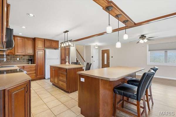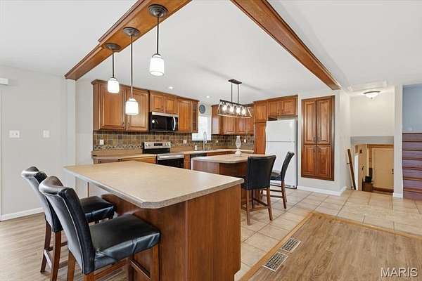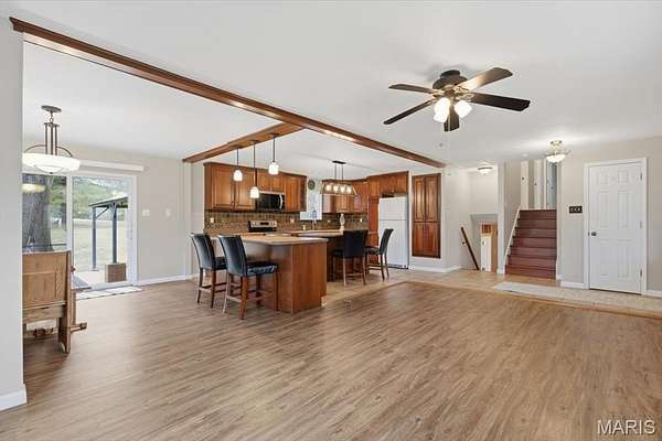 Country living just steps from city amenities! This gorgeous multi-level property is both rare & unique with just over 3 acres of flat & useable land including your very own, fully stocked lake for fishing & swimming. Wind up a recently re-sealed asphalt driveway to pleasing & low maint. curb appeal. The exterior of the home is improved with brick front accents, vinyl siding, wrapped soffits, architectural shingles & large covered front porch with views of the lake. Walk inside to an open floorplan w/fresh paint, newer flooring & numerous updates. Large family area features wood laminate flooring & ceiling fan. Custom kitchen includes 42 in cabinets w/crown moldings, tile backsplash, large center island, SS appliances, breakfast bar & dining area. Walk up a small flight of stairs to a master BR suite with private master bath, 2 add BR's & 2nd fully updated bath. Finished LL adds to your useable square footage with a family/rec room, full woodburning fireplace insert w/brick surround, 4th bedroom, 3rd full bathroom w/custom tile enclosure & laundry area. Down yet another small flight of stairs is a finished room & tons of storage space. On the exterior you'll find a 2-car attached garage, external garage/workshop w/propane stove & 100 amp panel, garden area & fully stocked private lake with dock for fishing. RSD, minutes from 44 and shops/restaurants in downtown Eureka.