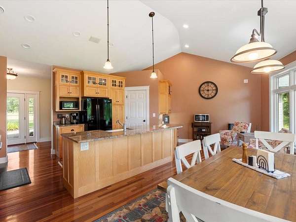 Incredible opportunity located on The Vintage Golf course in Staples, MN. With executive styling and gorgeous curb appeal, this property will not disappoint. Features 4500 finished square feet with 4 bedrooms, 3 baths, custom maple cabinetry, impressive primary suite, vaulted ceilings, office, sunroom, gas fireplace, geothermal heat/cooling (F/A + in-floor), 9ft basement height, steel/stone exterior, deck, patio, porch and so much more! The window arrangement brings it all together coalescing the indoor and outdoor spaces to perfection. A triple attached garage, a 26x30 detached garage and a 30x48 pole building with 12ft overhead doors have all of your storage needs met. Sits on nearly 3 acres with beautiful landscaping, panoramic views and 320ft of 'Golden Pond' frontage. The setting is simply amazing! The Vintage Golf Club is an 18-hole championship public golf course that runs alongside the Crow Wing River. A fan favorite with top quality conditions, multiple practice areas and a full sized driving range. Ideal location just 10 minutes north of Staples and Lakewood Health System. An absolute must see!