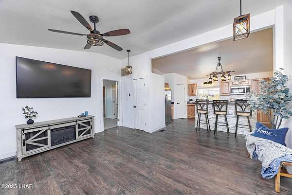 - Breakfast Bar, Casual Dining, Ceiling Fan(s), Counters-Solid Surface, Kitchen Island, Open Floorplan, Pantry, Vaulted Ceiling(s)