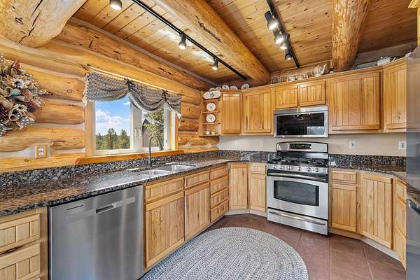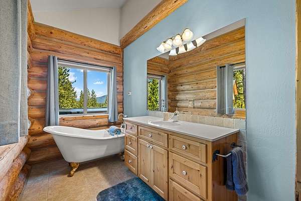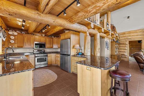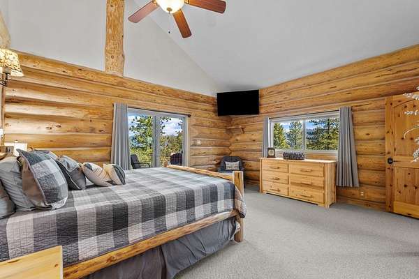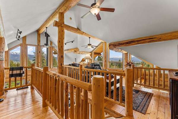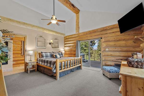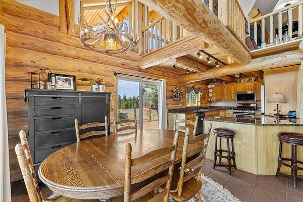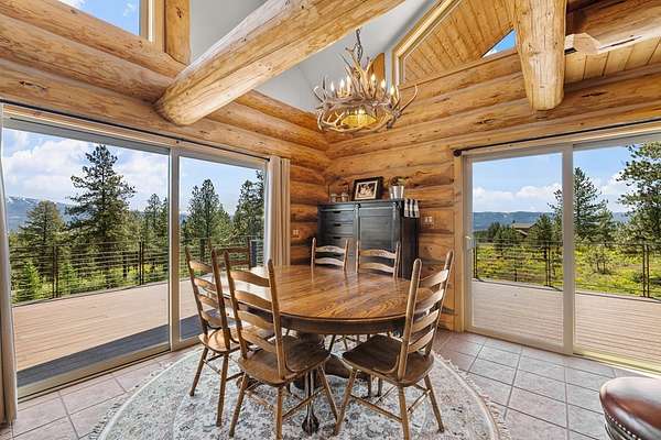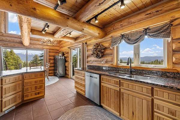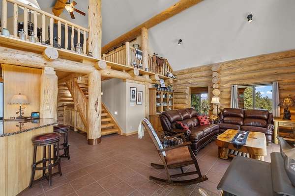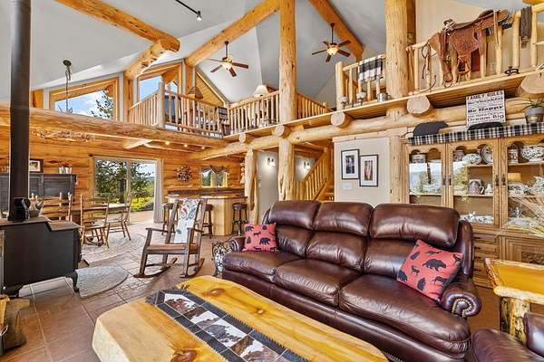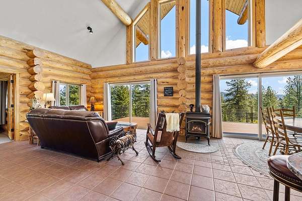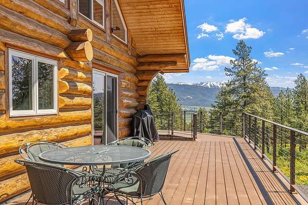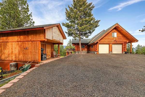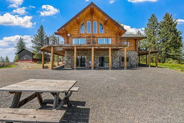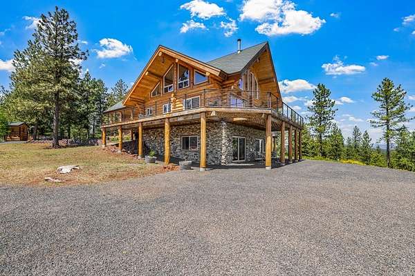 Experience top of the world views from this stunning 3400+ sq ft estate! THIS MOUNTAIN HAVEN is an IMMACULATE Ron Frye hand-hewn log home w/ Salmon River rock, including several outbuildings, on 5.71 acres in a small, gated community above the Meadow Creek Golf Resort. Offering a private and serene escape into the beauty of nature & a panoramic view of the mountains from every window! Brundage, No Business, Seven Devils, Pollock, Granite, Jug, to name a few, with gorgeous Meadows Valley below! The quality construction shows throughout in this 3 bedroom, 2 1/2 baths well designed floor plan. The open living area boasts large log beams accenting the two-story vaulted ceiling, with the numerous windows running from floor to ceiling to capture the scenic outdoors. The main floor living features an open floor plan with kitchen, dining, great room, wrap around Trex deck, laundry/half bath and a primary suite w/ a private hot tub. All with radiant heated floors throughout. An open loft sitting area enters into an office/4th bedroom. Daylight basement features 9' ceilings, radiant heat, large family/rec room, 2nd kitchen, 2nd laundry room, 2 bedrooms, full bath & private entrance.
