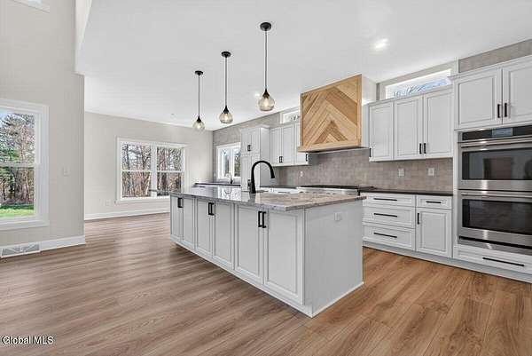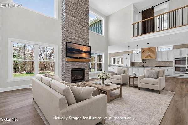 A rare opportunity to own a nearly new custom built 5 bedroom, 4.5 bath home without the wait of New Construction. Built just three years ago by Hanifin Home Builders and set on 2.22 private acres backing to forever wild & nature trails, this residence offers a refined blend of privacy, craftsmanship, and modern design within the Bethlehem School District. Thoughtfully designed for both everyday living and multigenerational flexibility, the home offers a first-floor primary suite featuring a true spa-like en suite with a soaking tub, oversized walk-in shower w/ double shower heads, separate vanities, and a private water closet, along with its own dedicated laundry. A second first-floor bedroom with a private bath provides ideal guest or in-law accommodations. The heart of the home is an expansive chef's kitchen with a statement island, double wall ovens, shrock cabinetry, prep sink & area, opening seamlessly to a sunlit breakfast nook, an incredible custom pantry and a generous formal dining room, all open to a dramatic great room with cathedral ceilings and gas fireplace. Upstairs, a private bedroom suite is complemented by two additional bedrooms, a full bath, and a second-floor laundry. Quality finishes carry throughout, including LVP flooring and an elegant oak tread staircase. 3-car garage with EV charger provides ample space for vehicles and hobbies, and complete lawn sprinkler system.The sprawling unfinshed basement is complete with egress and workshop area ~offers exceptional potential for future finished space. This property balances luxury, comfort, and peace in a way that's rarely available as ''new'' homes like this are rare to find. Just waiting to welcome you HOME.