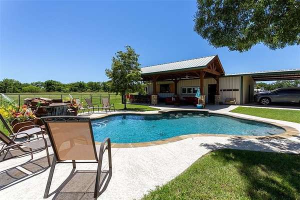 Charming Country Retreat on 3.17 Acres in Paradise, TX. Welcome to 279 County Road 3470 - a serene slice of country living nestled in the heart of Wise County. This beautifully maintained 3 bedroom, 3 bathroom home with an office offers 2313 sqft of comfortable living space, set on a spacious 3.17 acre lot in the desirable Windmill Trails community located within Paradise ISD known for academic excellence and a strong athletics program particularly in football, cross country, track and field and a notable bass fishing team. Step inside to a warm and inviting interior featuring a cozy fireplace, perfect for family gatherings or quiet evenings. The living, dining, and kitchen areas, create a functional and welcoming space for everyday living and entertaining. The primary suite is a peaceful retreat located on the first floor with its own private bath offering dual sinks, jetted tub, separate shower and walk in closet, while two additional bedrooms upstairs provide ample space for family or guests. There is also an office space on the first floor which could be used as a fourth bedroom. Outside, find an inground pool with water feature, covered seating and outdoor kitchen. Enjoy country views, mature trees, and plenty of space for gardens, animals, or future expansion. Take the fun inside the 1350 sqft air conditioned pool house primed for fun and relaxation. Scenic privacy, and the tranquility of rural living with the convenience of nearby Paradise and Decatur amenities. Whether you're looking for your forever home or a weekend escape, this property offers the perfect blend of comfort, space, and country charm.