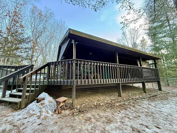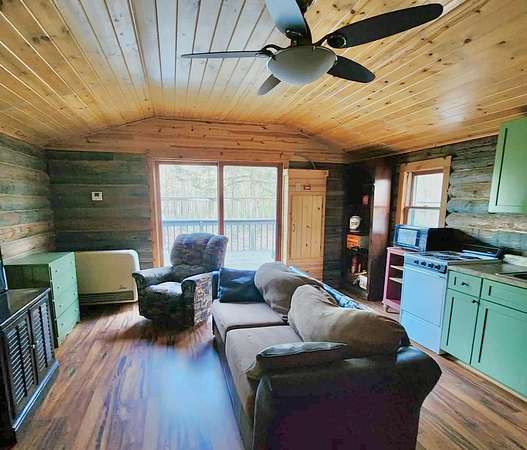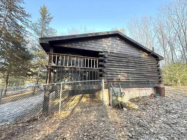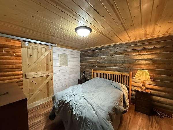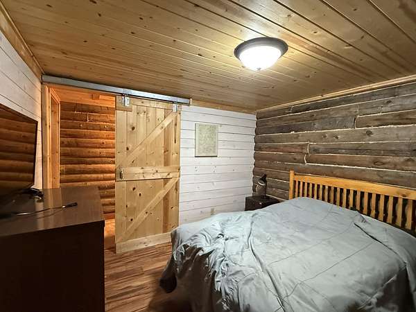 Northwoods charm meets recreational lifestyle in this 1-bedroom, 1-bath authentic log home, wood flooring; covered front porch set on 1.65 private acres on dead end road -- complete with deeded access to Goose Lake. Warm wood interiors and an open-concept layout create a cozy, efficient living space ideal for a weekend retreat, full-time residence, or investment opportunity. The log construction delivers rustic character while the manageable footprint keeps ownership simple and low-maintenance. Enjoy private acreage with room to expand, build a garage or pole shed, or create your own wooded getaway setting. Goose Lake offers water recreation with a maximum depth of 22 feet. Fish for Largemouth Bass, Northern Pike, and Panfish, or spend your days kayaking, canoeing, or enjoying boating . A public boat landing and beach provide easy access to the water. Property consists of lots on Lake Shore Dr and Beech St.