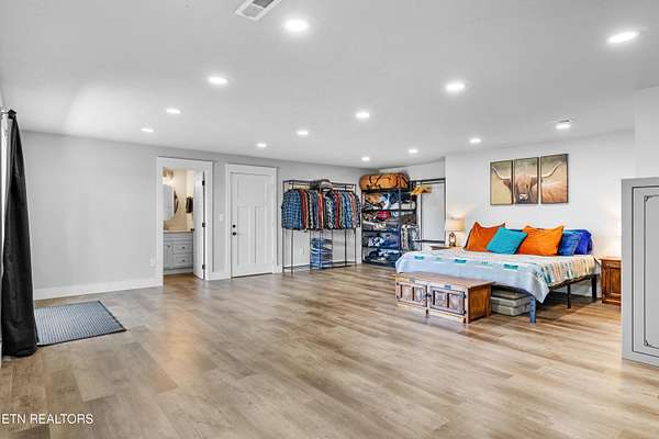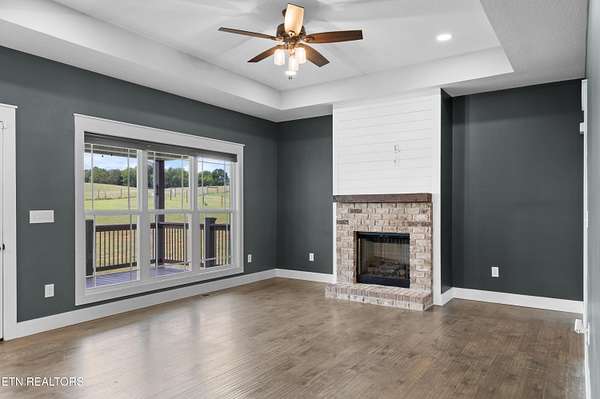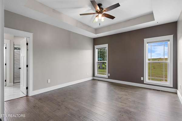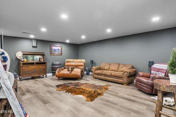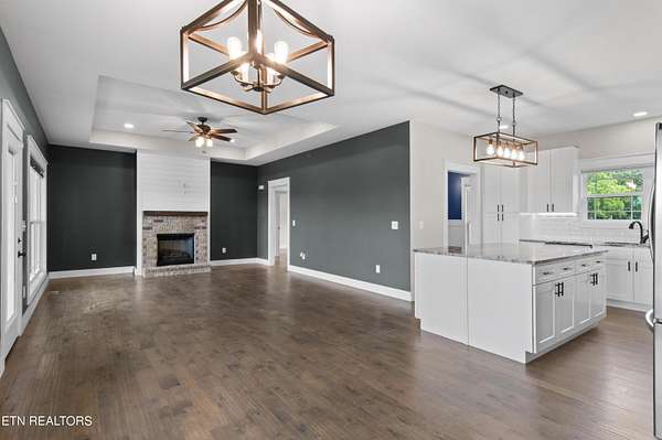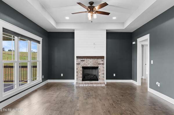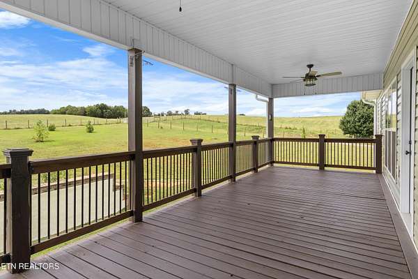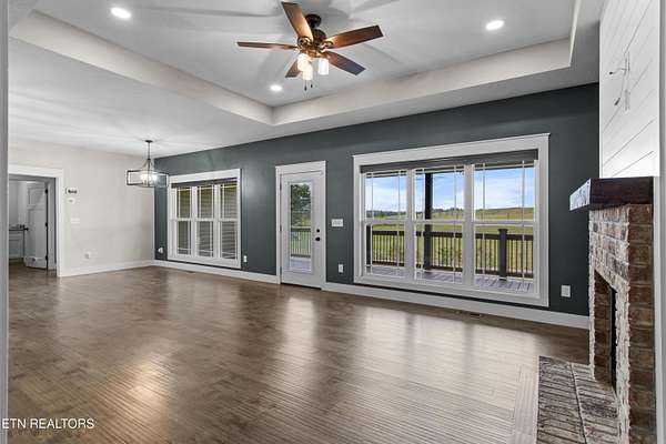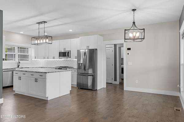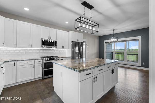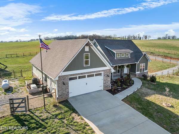 Rare opportunity to own a 4-bedroom, 3-bath Craftsman basement rancher on a 1.63-acre double lot in the desirable Lakeside Meadows community--without HOA fees. Qualified buyers may also take advantage of an assumable VA loan at just 4.65%, a valuable opportunity in today's market. This 3,254 sq ft home features an open-concept floor plan with engineered hardwood floors, tray ceilings, and a floor-to-ceiling brick gas fireplace with shiplap accents in the main living area. A versatile flex room off the foyer is perfect for a home office, study, or formal dining room. The spacious chef's kitchen includes stainless steel appliances, gas range, soft-close cabinetry, and an oversized marble-granite island with abundant storage and seating. The main-level Owner's Suite offers a tray ceiling, large walk-in closet, and spa-style bath with dual vanities, tiled walk-in shower, and Euro glass door. Two additional bedrooms are generously sized and all main-level bedrooms feature walk-in closets, providing exceptional storage. A full bath and laundry room with built-in cabinetry, utility sink, and included washer and dryer complete the main level. The finished walk-out basement adds over 1,200 sq ft of flexible living space and can function as a spacious fourth bedroom, guest suite, media room, recreation area, or multi-generational living space, plus a separate basement garage perfect for a workshop, boat, or additional storage. Enjoy peaceful countryside views from the expansive covered porch with no backyard neighbors. Additional highlights include a whole-home Generac generator, security system, fresh interior paint, two-car main-level garage, and poured-wall foundation. Located minutes from Tellico Lake, golf, marinas, Tellico Village, I-75, Maryville, Turkey Creek, and McGhee Tyson Airport.