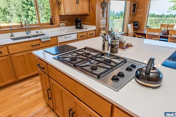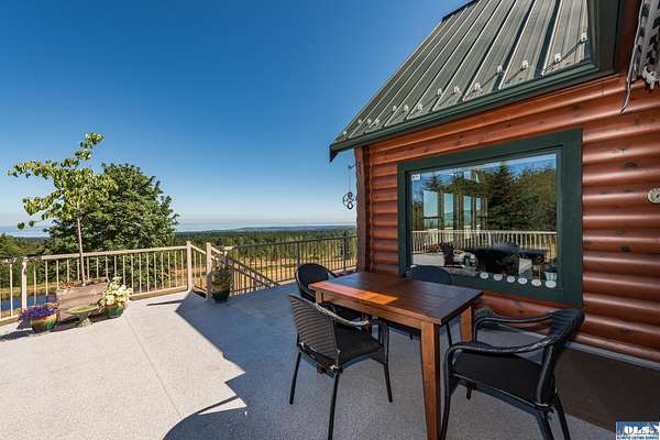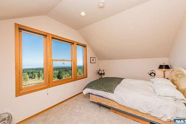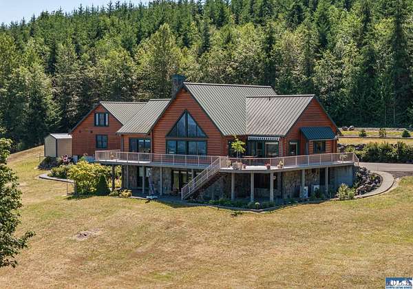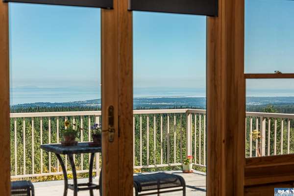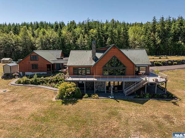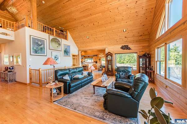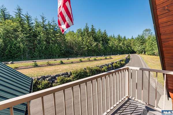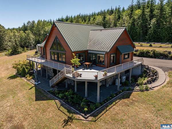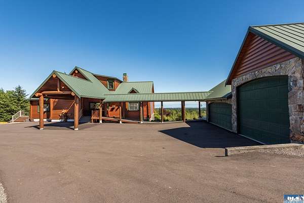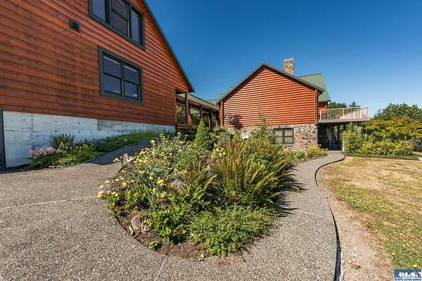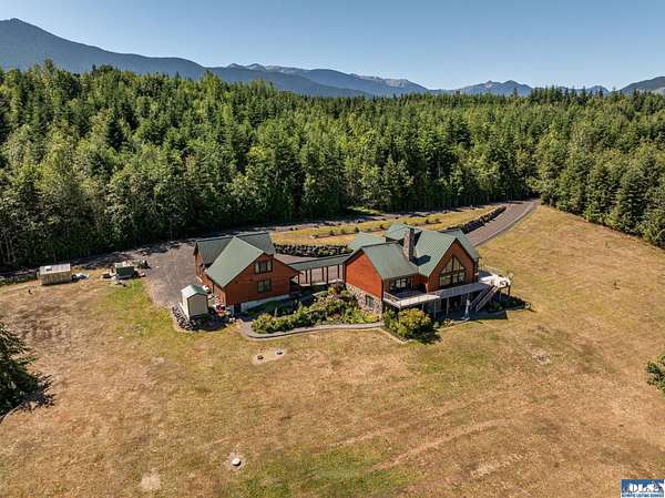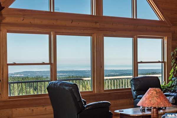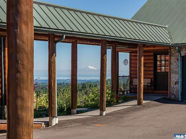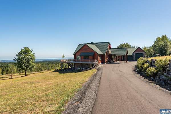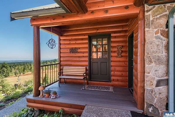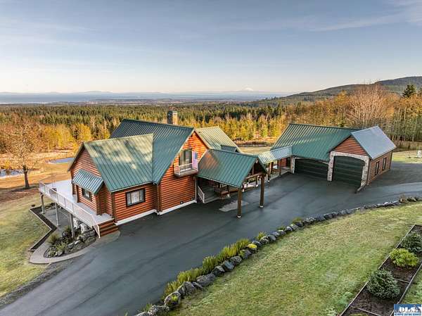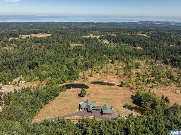 A mountaintop masterpiece overlooking the Strait. Experience a rare fusion of architectural excellence and natural splendor. Perched on twenty gated acres, this David Highlander custom log estate offers a level of privacy and craftsmanship that is simply unprecedented. Every inch of this kiln-dried, laminated cedar log home reflects a commitment to quality, from the R60 insulation to the soaring pine ceilings, maple floors, and rich hemlock millwork. The main level is a masterclass in Pacific Northwest design, anchored by an expansive living room featuring a floor-to-ceiling Ledgestone Fireplace, Massive windows frame a cinematic panorama of the Dungeness Valley and the shipping lanes of the Strait of Juan de Fuca. The gourmet chef's kitchen is outfitted with Cambria quartz counters, a sprawling island, Dacor oven, Subzero refrigeration, and a new Kraus sink. Nearby, the primary suite serves as a private sanctuary with its own deck access, a walk-through custom closet system, and a spa-like bath featuring a jetted tub and quartz finishes. The main floor also includes a media room and a library loft with a south-facing deck. The walk-out lower level is designed for high-end hosting, featuring a secondary family room with a bar, pool table, and another stunning fireplace. Residents can relax in the private sauna, store a collection in the dedicated wine room, or retreat to the massive workshop equipped with 220V power. Accessed via a covered breezeway, the guest apartment offers a self-contained retreat with a kitchenette, bath, and a view-ready bonus bedroom, situated above a three-car heated garage with a thirteen-foot door to accommodate an RV or boat. The exterior is as functional as it is beautiful, featuring vinyl boat decking, new railings, and an electric awning for year-round enjoyment of the 180-degree views. The twenty-acre grounds include three ponds--one featuring a private dock--as well as a lush garden, greenhouse, and expansive pastures designed to maximize the sightlines. From the Cascades and Mt. Baker to Victoria B.C. and the San Juan Islands, the vistas are truly world-class. Located just twenty minutes from both Sequim and Port Angeles, this estate offers a tranquil escape without sacrificing convenience.