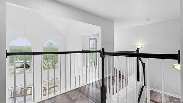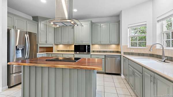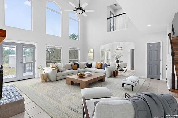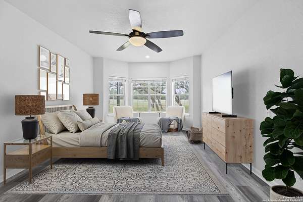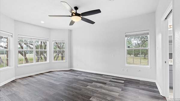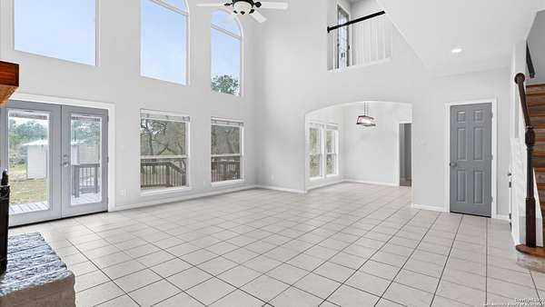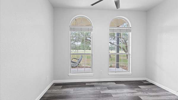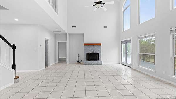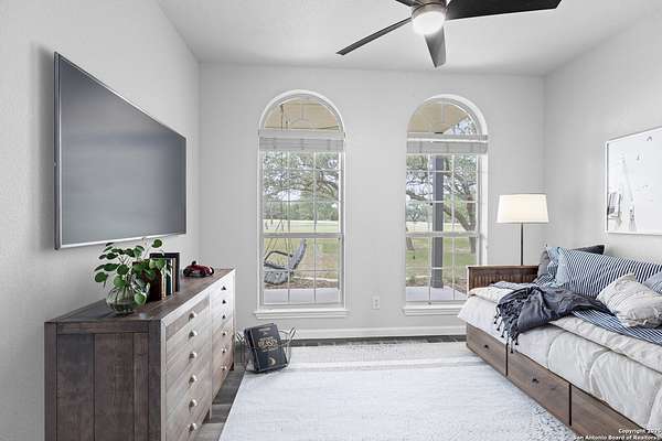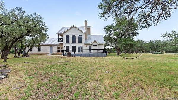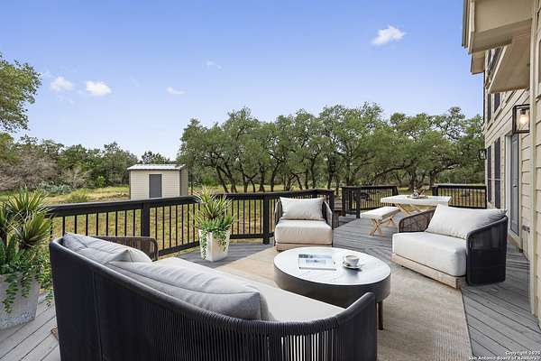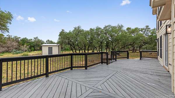 Nestled on a scenic 2.3-acre corner lot in the heart of the Texas Hill Country, this beautiful two-story home offers the perfect blend of privacy, natural beauty, and thoughtful design. Surrounded by mature trees and just minutes from historic Gruene, this property provides a peaceful retreat with easy access to local charm and modern conveniences. Inside, you'll find 3 bedrooms, 3.5 bathrooms, and soaring ceilings that fill the home with light. The kitchen features stainless steel appliances, an island with a smooth cooktop and range, tile backsplash, pantry, and opens to a breakfast area. There's also a formal dining room just off the kitchen for family meals or gatherings. The living area features abundant windows with a wood-burning fireplace that creates a warm and inviting atmosphere. The primary suite is conveniently located on the main level and boasts his-and-hers closets, a double vanity, a walk-in shower, and a garden tub. A secondary downstairs bedroom includes its own private en-suite bath-ideal for guests or multigenerational living. Upstairs, you'll find a third bedroom with full bath, a versatile bonus room perfect for a reading nook, office, workout space, or playroom, and a large storage area off the bedroom. Step outside to your expansive backyard deck-ideal for entertaining, relaxing, or stargazing under the wide Texas sky. A storage shed provides extra convenience, and the oversized two-car garage is accessed via a private drive, complemented by a circular front drive for ample guest parking. Located in desirable River Chase, this home comes with access to top-tier amenities including a private Guadalupe River park, clubhouse, pool, fitness center, sports courts, and miles of scenic walking trails. If you're looking for space, trees, and Hill Country charm close to town-this could be the one!