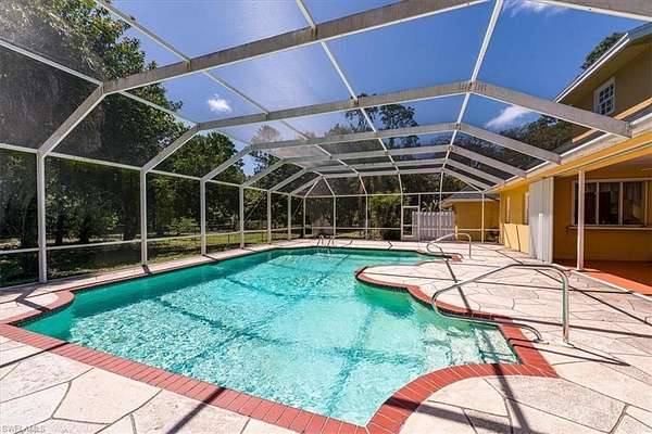 Golden Gate Estates pool home on acreage with no HOA. Discover the perfect blend of privacy and convenience with this well-maintained 3+den, 2.5-bath home situated on 2.73 acres in highly sought-after Golden Gate Estates. Offering over 2,900 sq ft of living space, this two-story residence features vaulted ceilings, an open floor plan, abundant natural light, and spacious living areas ideal for entertaining. The home includes a flexible den/office, fireplace, walk-in closets, and a screened lanai overlooking peaceful preserve views. The expansive lot provides room for a guest house, workshop, or additional garage, making it perfect for those seeking space and flexibility. No HOA and no restrictions-bring your RV, boat, or work vehicles with ease. Enjoy acreage living in Naples with mature landscaping, fruit trees, and ultimate privacy, all while being just minutes from shopping, dining, top-rated schools, and Naples beaches. This is a rare opportunity for a Naples estate home with land, ideal for full-time residents, investors, or those looking for a private retreat. Schedule your showing today!