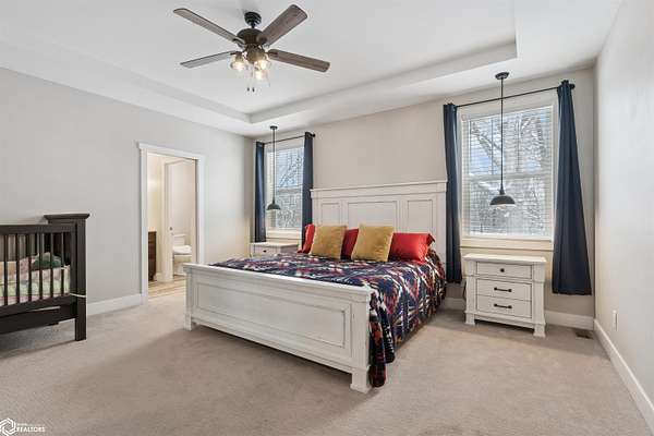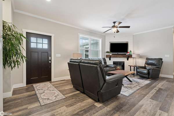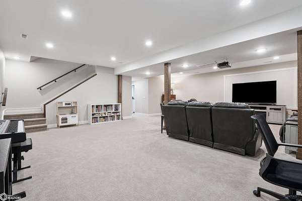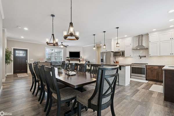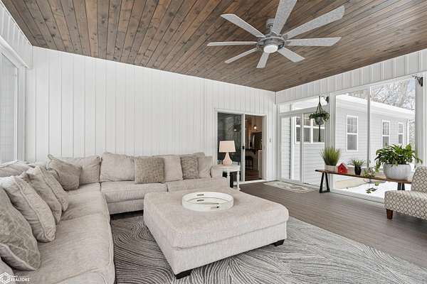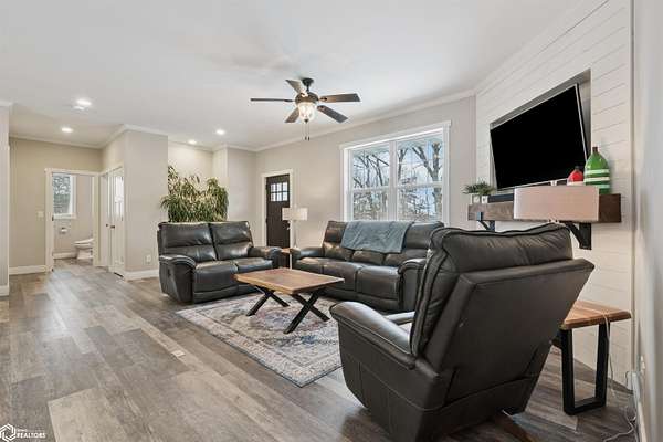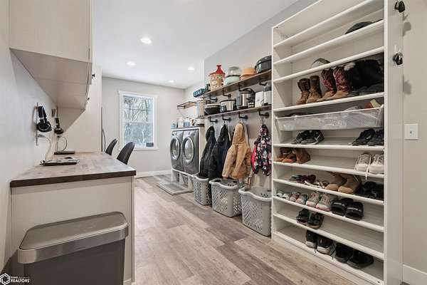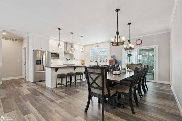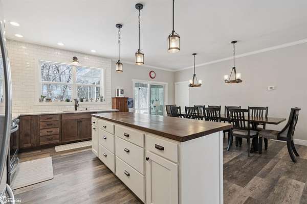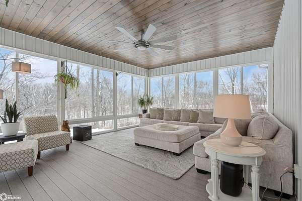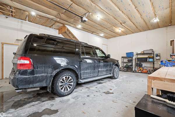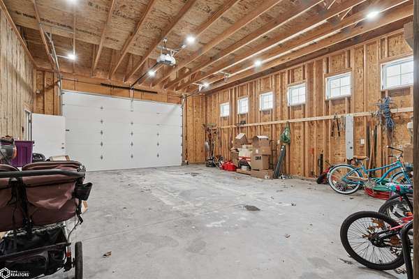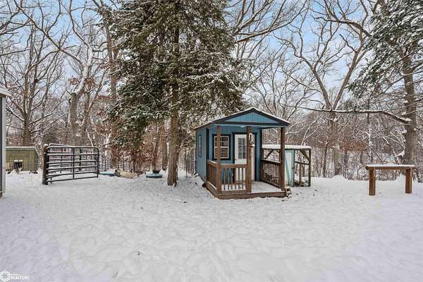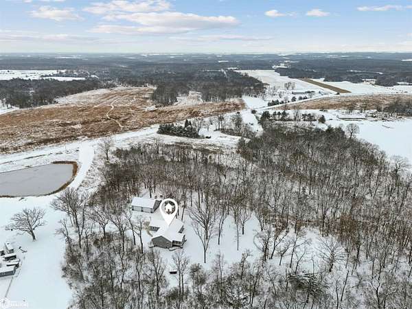 Don't miss this stunning 5-bedroom, 3-bathroom home, privately nestled on 6.22 acres (m/l) of mature, wooded landscape. Constructed with 2x6 lumber in 2018, the home offers the perfect blend of modern comfort and country living. The open-concept kitchen, dining, and living area showcases premium finishes, including a custom white-oak island, dining table, and fireplace mantel which were uniquely crafted from trees harvested on the property. The 3-seasons porch offers breathtaking views of the secluded timber. The primary suite features a spa-inspired bath with walk-in shower, heated floors, and dual vanity. Designed for both comfort and functionality, the main level includes a spacious mud/laundry room with additional space ideal for a craft area or home office. The finished lower level features a large family room, two bedrooms with garden-level windows, a full bath, and abundant storage! The acreage is perfectly suited for recreation or hobby farming. It offers horse stalls, a small outdoor riding area, and a chicken coop. Don't forget the private hiking or horse-riding trails and access to both stocked ponds! A standout feature is the detached 4-car garage, one side being heated. This is complete with a workshop, a lean-to, 10' garage doors, water and electricity! The upstairs has potential to be finished into a mother-in-law suite. A rare opportunity to enjoy privacy, acreage, and modern living all in one property! Call for a showing today!