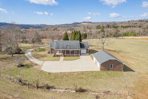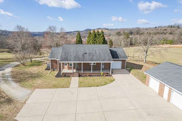 The land is mostly open and gently rolling -- ideal for horses, livestock, gardening, or simply enjoying wide-open Tennessee views. There's a detached garage, a large storage building for equipment or hobbies, and ample space for trailers, tractors, and recreational vehicles.