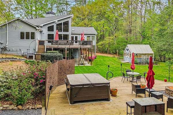 Tucked at the end of a quiet cul-de-sac in Lilburn, this extraordinary 5-acre retreat unfolds like a hidden nature preserve-rolling gently down to the banks of the Yellow River. Here, mornings begin with birdsong, afternoons invite wandering along private trails, and evenings settle in with deer grazing just beyond your view. It's a setting that feels far removed from the pace of daily life, yet you're just minutes from Decatur, Stone Mountain Park, and Atlanta. Inside, soaring walls of windows frame the landscape like living artwork, flooding the home with natural light and creating a constant connection to the outdoors. Multiple expansive decks and patios extend your living space into the treetops, offering countless places to gather, unwind, or simply take in the quiet rhythm of the river below. The property itself is where this home truly shines-five acres of usable green space with room to explore, garden, and play. A custom-built greenhouse stands ready for year-round growing, while RV parking with electrical hookups adds flexibility for guests or adventure-ready living. The finished basement provides the perfect backdrop for entertaining, game nights, or extended stays. Tucked within a community offering optional swim, tennis, and clubhouse amenities, this home blends the best of both worlds: a private wildlife sanctuary with the convenience of city proximity. A rare opportunity to own not just a home, but an experience-your own retreat in the city.