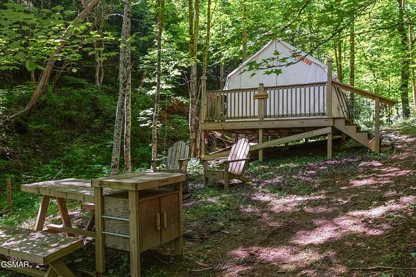 45 Acres Bordering the Great Smoky Mountains National Park with Existing Income & Expansion Potential! This 45-acre property in Wears Valley offers immediate usability with long-term upside, located directly adjacent to the Great Smoky Mountains National Park. Unlike raw land offerings, this property is already improved and positioned for continued income generation from day one. Existing improvements include loads of new upgrades to the 3-bedroom residence (new roof, gutters, windows, and hot water heater), a well-maintained RV, three established glamping tents, an insulated and climate-controlled retail or operations building, and a double-bay garage/workshop with electricity. The land features gentle, usable topography, internal trails, natural creeks, and sweeping mountain views. Current infrastructure supports a quick setup for short-term rental or glamping operations while allowing a buyer to expand gradually--whether adding additional glamping units, tiny homes, cabins, or holding the property as a private retreat with income-producing components. The scale, park adjacency, and existing improvements make this a rare opportunity in Wears Valley for buyers seeking flexibility without starting from scratch. Properties of this size and location with operational improvements are increasingly difficult to find especially in Wears Valley. This offering allows an owner to step into a functioning setup today while planning future growth on their own timeline.
