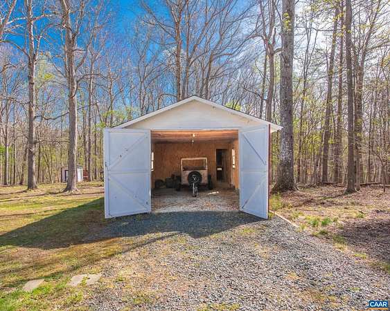 Enjoy the convenience of this incredible location with easy access to Charlottesville in this adorable, well-maintained ranch-style home. Original refinished wood floors gleam throughout. The home offers two bedrooms plus a wonderful bonus room that could serve as a third bedroom, guest space, or home office. The updated bathroom still embraces its original vintage charm, while the kitchen has been thoughtfully renovated with granite countertops, an efficient layout, a large pantry, and a dining area. The property itself is truly special, offering nearly 2.5 acres of land to spread out and enjoy. Mature trees provide a beautiful setting, and there is a level garden spot complete with a potting shed. Additional features include a spacious one-car garage, two additional outbuildings, one of which serves perfectly as a garage workshop, ample parking, and a lovely circular driveway.