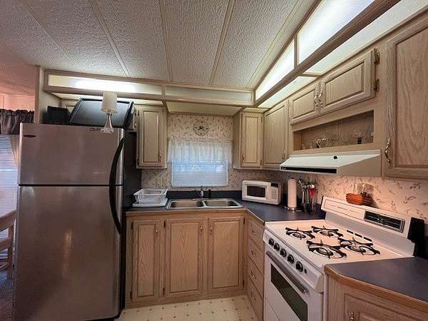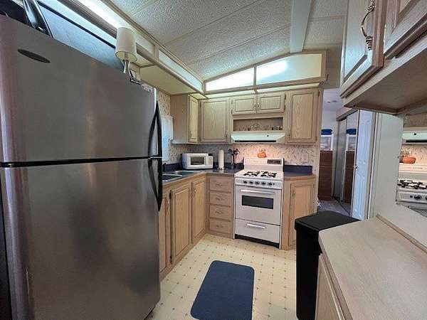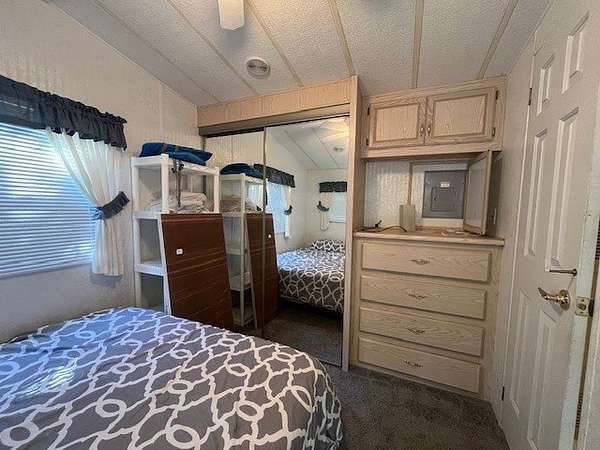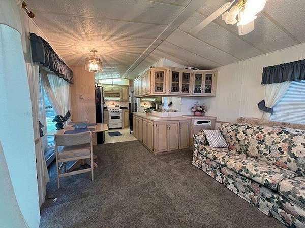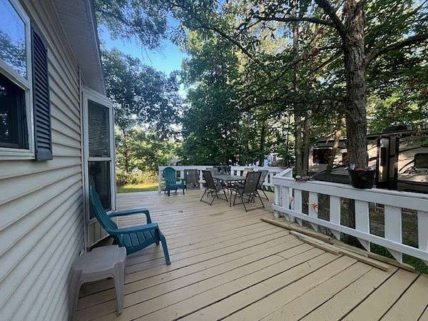 Located within the gated campground community of Woodsmoke Ranch, Lot 856 features a well-maintained 1992 Canterbury Park Model. Inside, you'll find a spacious one-bedroom layout with a closet that includes built-in drawers and a large additional built-in dresser, offering excellent storage. The carpeting throughout the park model was replaced in 2024, giving the interior a fresh, updated feel. The roomy kitchen includes full-size appliances, abundant cabinetry, and a designated dining area. Park model comes fully furnished, including a sleeper sofa for extra sleeping space, and has sliding glass doors that lead out to a recently redone deck-perfect for relaxing outdoors. Additional features include a two-year-old water heater, central air and heat, and all furnishings included. This is a category 5 lot with yearly dues of 2,656.15, which covers water, electric, garbage, and access to Woodsmoke Ranch's many amenities. Woodsmoke Ranch amenities: 2 pools, 2 stocked fishing ponds, 3 pavilions, basketball courts, sand volleyball, gaga ball, bags, 2 playgrounds, RC car racetrack, baseball field, laundromat, convenience store, cafe, horse stables (for rent), adult lounge, Mygrain Saloon, events planned year long and so much more. RV campground community, cannot be a primary residence. Gated community; showings by appointment only. No access without an appointment.