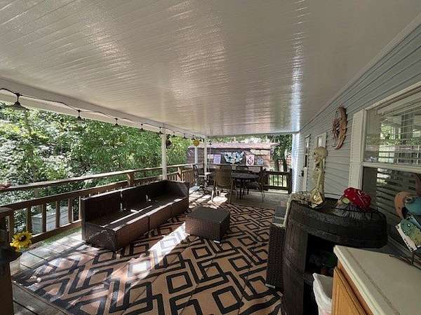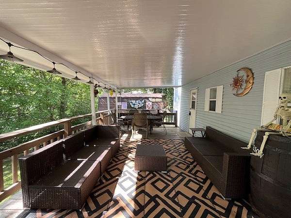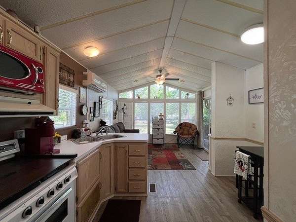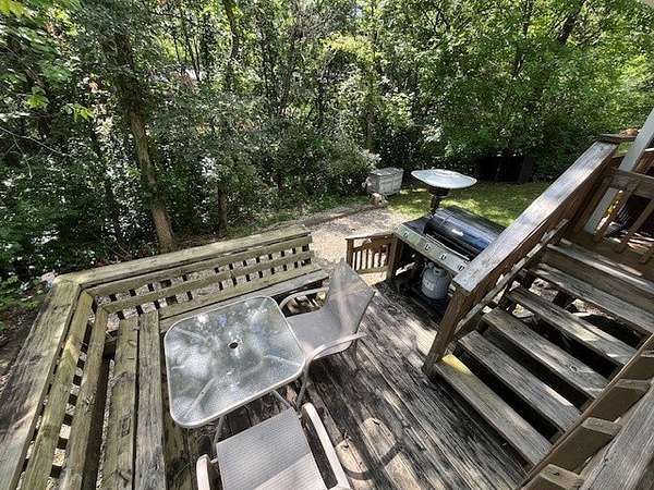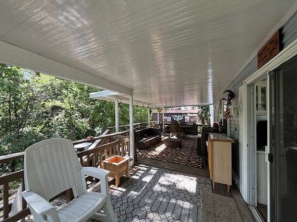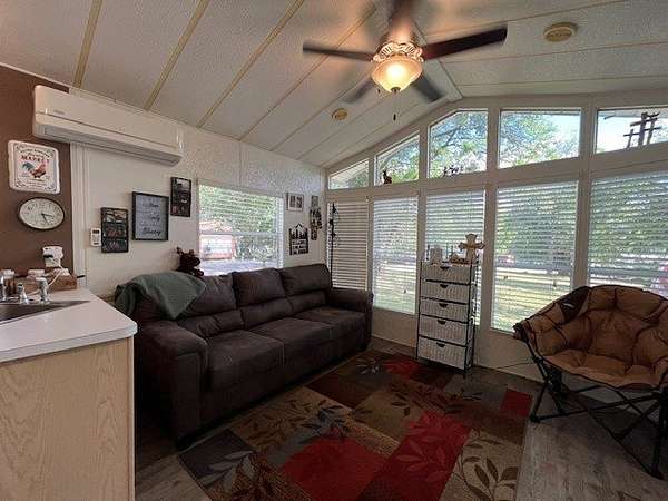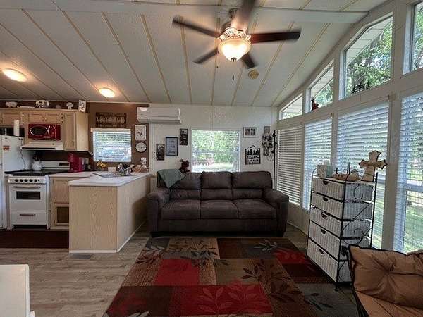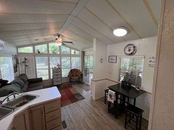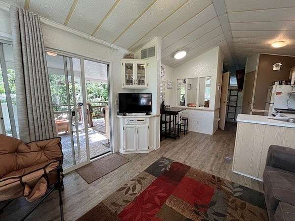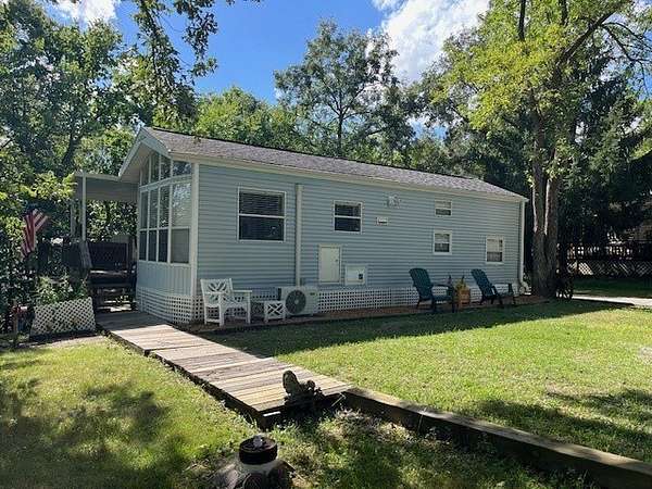 Located in the gated community of Woodsmoke Ranch in Seneca, IL, this 1996 Elkhart Park Model on Lot 577 offers comfort, functionality, and plenty of updates. Inside you'll find a primary bedroom with closet and built-ins, a second bedroom featuring a 2-bed bunk setup with built-in storage and wall sconces, plus a loft that provides even more sleeping space. The home boasts high ceilings with large windows for natural light, a spacious kitchen, and a roomy living room with a nearly new sleeper sofa. Recent upgrades include new bedroom carpet, upgraded kitchen lighting, new vinyl flooring, a new living room ceiling fan/light, a mini-split heating and A/C system, rebuilt deck frame, leveled shed, leveled Park Model with new shoring, and front gutter guards. Almost all furniture and kitchenware are included, making this a turnkey retreat. Outdoor living is just as inviting with a large fully covered deck, an additional uncovered lower deck, and a fire pit set in a gravel area. This is a Category 3 lot with yearly dues of $2,015.79, which cover water, electric, garbage, and access to all of Woodsmoke Ranch's amenities. Woodsmoke Ranch amenities: 2 pools, 2 stocked fishing ponds, 3 pavilions, basketball courts, sand volleyball, gaga ball, bags, 2 playgrounds, RC car racetrack, baseball field, laundromat, convenience store, cafe, horse stables (for rent), adult lounge, Mygrain Saloon, events planned year long and so much more. RV campground community, cannot be a primary residence. Gated community; showings by appointment only. No access without an appointment.