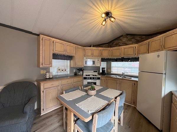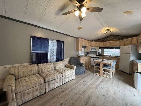 Welcome to Lot 322 within the highly desirable Woodsmoke Ranch community! This property features a 1998 Canterbury Park Model offering 1 bedroom plus a loft for additional sleeping space. The bedroom includes a closet and built-ins for convenient storage. The spacious living room provides plenty of room to relax and includes a pull-out sleeper couch for guests. Enjoy the popular front-end kitchen design, complete with abundant cabinets, ample counter space, and all appliances included. High ceilings and new wood laminate flooring throughout enhance the open feel, while updated fixtures and fresh paint add to the move-in-ready appeal. The bathroom includes a tub/shower combo for added comfort. This home is fully furnished and includes a large deck-perfect for outdoor enjoyment-and a shed for extra storage. Ideally located near Pool 2, this is a Category 4 lot with yearly HOA dues of $2,382.44 which includes water, electric, garbage and park amenities. Woodsmoke Ranch amenities: 2 pools, 2 stocked fishing ponds, 3 pavilions, basketball courts, sand volleyball, gaga ball, bags, 2 playgrounds, RC car racetrack, baseball field, laundromat, convenience store, cafe, horse stables (for rent), adult lounge, Mygrain Saloon, events planned year long and so much more. RV campground community, cannot be a primary residence. Gated community; showings by appointment only. No access without an appointment.