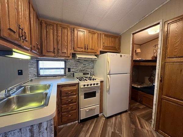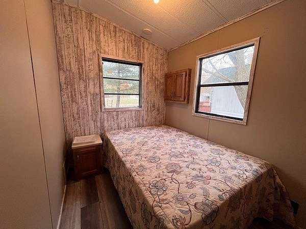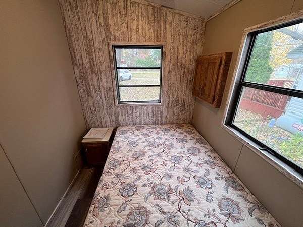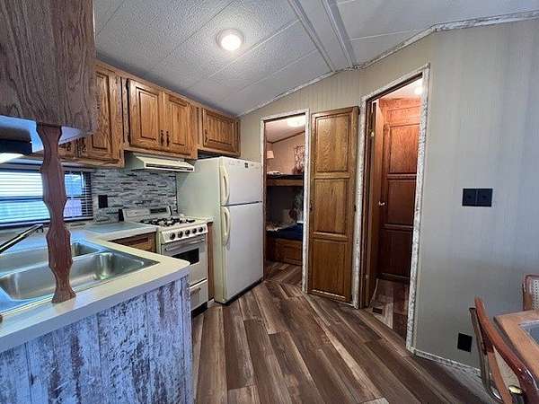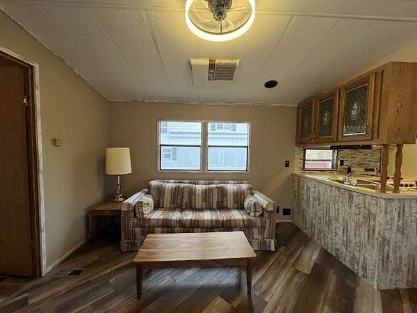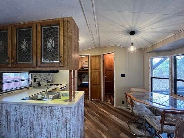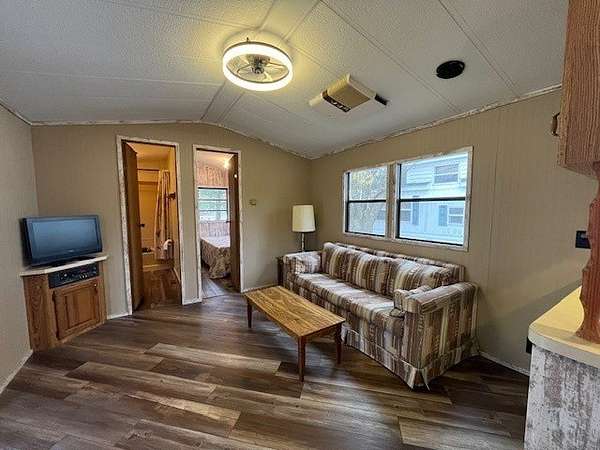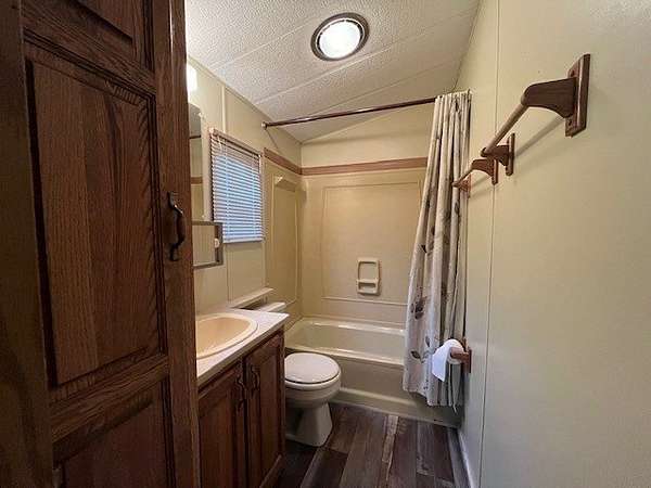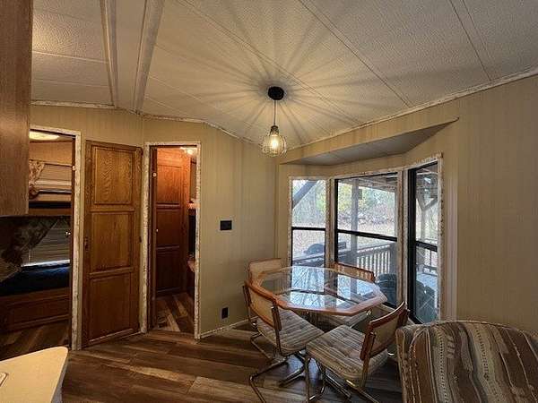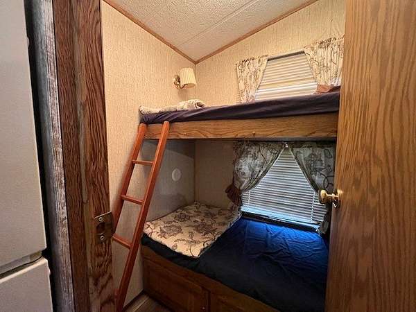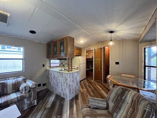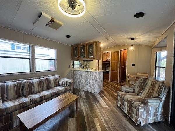 Welcome to Lot 1092 within the desirable Woodsmoke Ranch community! This rare 1987 Mallard Coach Park Model offers an impressive 3 bedrooms, making it a perfect retreat for larger gatherings or those who love to host guests. The spacious primary bedroom features a closet and built-in drawers, while each of the two bunk rooms includes its own closet and convenient under-bed built-in storage drawers. The kitchen provides plenty of cabinet and counter space, along with a cozy table area framed by a bay window for added charm. A large living room with a sleeper couch offers ample space to relax and unwind, and the bathroom includes a tub/shower combo for convenience. Additional highlights include a covered deck with electrical outlets, grill included, freshly painted interior (2024/2025), replaced trim and wood laminate flooring throughout (2024/2025), and some replaced window sills. All furniture stays, making this a turnkey opportunity! Roof top A/C and propane furnace. Situated at the end of a cul-de-sac for added privacy. Lot 1093 is also for sale, offering the potential to create a large combined space if purchased together. This is a Category 2 lot with yearly HOA dues of $1,832.43, which include water, electric, garbage, and park amenities. Woodsmoke Ranch amenities: 2 pools, 2 stocked fishing ponds, 3 pavilions, basketball courts, sand volleyball, gaga ball, bags, 2 playgrounds, RC car racetrack, baseball field, laundromat, convenience store, cafe, horse stables (for rent), adult lounge, Mygrain Saloon, events planned year long and so much more. RV campground community, cannot be a primary residence. Gated community; showings by appointment only. No access without an appointment.