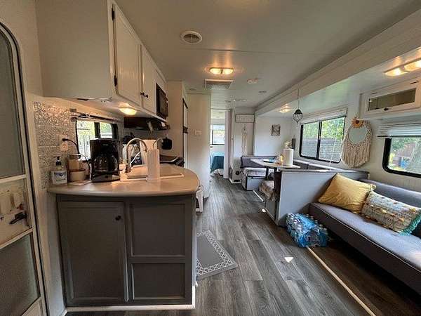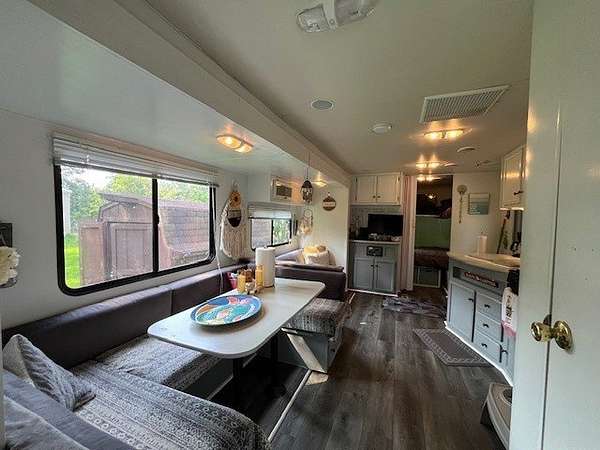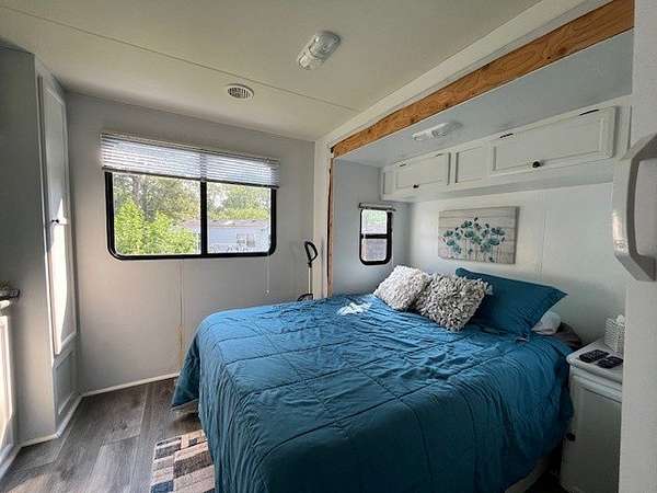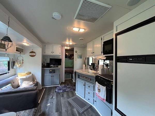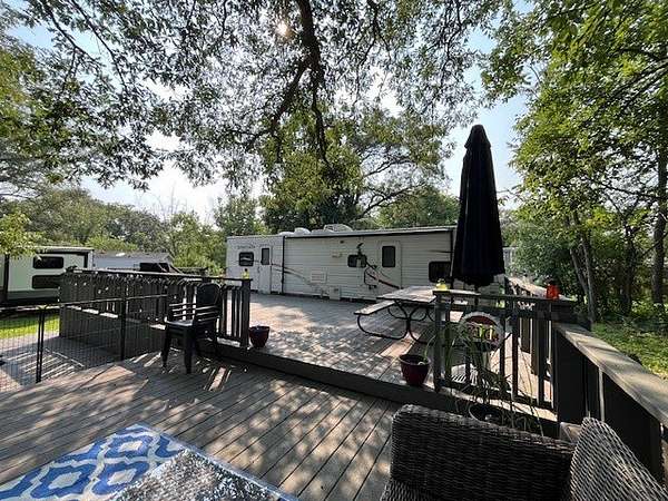Welcome to Lot 188 in the desirable Woodsmoke Ranch community! This property features a well-kept 2011 Sportsmen travel trailer offering a spacious and functional layout. Inside, you'll find a dedicated bunk room with a full bed and two bunks, perfect for guests. The primary bedroom is roomy and well-appointed with plenty of built-in storage and a new mattress, along with all other sleeping areas. The living area includes a cozy couch and a dining table area, adjacent to a fully equipped kitchen with everything you need. With two slide-outs, this trailer offers expanded living space, plus a full bathroom with a tub/shower combo. Stay cool with the rooftop A/C, and enjoy outdoor entertaining on the huge multi-level deck. A shed provides additional storage, and everything stays with the property except the grill. This is a Category 2 lot with yearly dues of 1,832.43, which includes water, electric, garbage, and access to Woodsmoke Ranch's extensive amenities. A great opportunity to enjoy seasonal living in a beautiful gated campground! Woodsmoke Ranch amenities: 2 pools, 2 stocked fishing ponds, 3 pavilions, basketball courts, sand volleyball, gaga ball, bags, 2 playgrounds, RC car racetrack, baseball field, laundromat, convenience store, cafe, horse stables (for rent), adult lounge, Mygrain Saloon, events planned year long and so much more. RV campground community, cannot be a primary residence. Gated community; showings by appointment only. No access without an appointment.