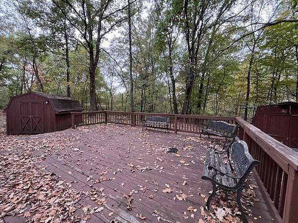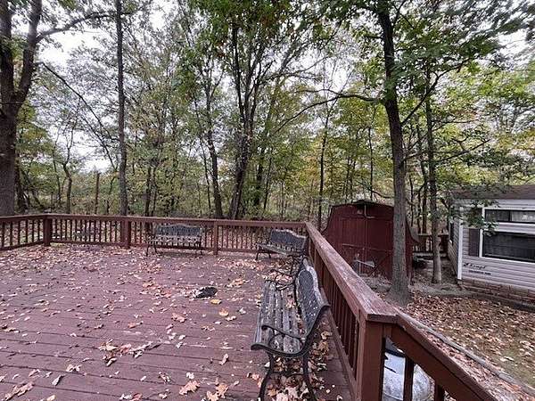 Located within the gated community of Woodsmoke Ranch in Seneca, IL, Lot 1361 offers a serene and private retreat surrounded by nature. This property features a 1991 Kropf Park Model with 2 bedrooms plus a loft, providing plenty of sleeping space for family and guests. The home boasts new laminate flooring installed in 2024, a spacious living area with sliding doors leading to a large deck, and a kitchen with all appliances included. Both bedrooms feature generous closets with built-ins, while the carpeted loft adds additional storage with a cabinet. The bathroom includes a convenient tub/shower combo. Enjoy the peaceful setting of this secluded lot backing to a wooded area-perfect for relaxing or entertaining outdoors. This is a Category 5 lot with yearly dues of $2,749.12, which includes water, electric, garbage, and use of all park amenities. Woodsmoke Ranch amenities: 2 pools, 2 stocked fishing ponds, 3 pavilions, basketball courts, sand volleyball, gaga ball, bags, 2 playgrounds, RC car racetrack, baseball field, laundromat, convenience store, cafe, horse stables (for rent), adult lounge, Mygrain Saloon, events planned year long and so much more. RV campground community, cannot be a primary residence. Gated community; showings by appointment only. No access without an appointment.