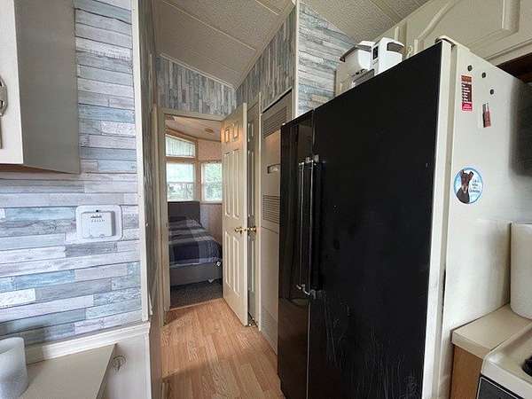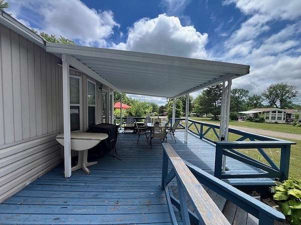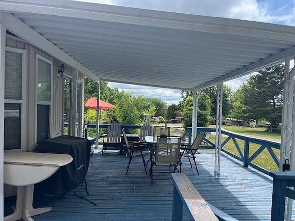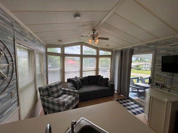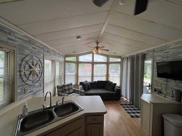 Welcome to Lot 1496 within the gated community of Woodsmoke Ranch! This well-maintained 1992 Sentinel Park Model is adorably decorated and offers a perfect retreat on a nice, flat lot. Inside you'll find one bedroom with ample built-in storage and direct access to a screened room at the rear of the unit-ideal for enjoying morning coffee in a peaceful setting. The spacious kitchen features plenty of cabinet space and includes a washer and dryer hookup in the kitchen closet. The living room boasts high ceilings and windows that flood the space with natural light. Outside, relax on the front deck under the awning or gather around the fire pit in the yard. A paved driveway and shed provide convenience and storage. All furniture stays, with the exception of the kitchen table, chairs, and counter stools. All ductwork was redone in 2023, and a brand-new A/C unit was installed in May 2023. This is a Category 3 lot with yearly dues of 2015.79, which includes water, electric, garbage, and access to all park amenities. Woodsmoke Ranch amenities: 2 pools, 2 stocked fishing ponds, 3 pavilions, basketball courts, sand volleyball, gaga ball, bags, 2 playgrounds, RC car racetrack, baseball field, laundromat, convenience store, cafe, horse stables (for rent), adult lounge, Mygrain Saloon, events planned year long and so much more. RV campground community, cannot be a primary residence. Gated community; showings by appointment only. No access without an appointment.