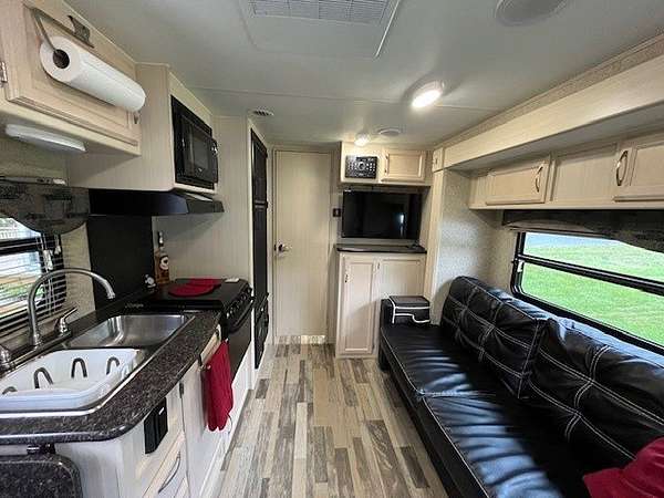 Located within the gated community of Woodsmoke Ranch in Seneca, IL, Lot 621 offers a peaceful retreat surrounded by nature. This flat lot features a 2018, 21-foot Winnebago Micro Minnie Travel Trailer that's completely turnkey and ready to enjoy. Inside, you'll find a comfortable sleeping area with a queen bed, a living space with a couch that converts into an additional bed, a fully equipped kitchen with all appliances included, and a full bathroom. A brand-new rooftop A/C unit was just installed for your comfort. Outside, enjoy the tranquil setting that backs up to a creek, complete with an exterior picnic table, gas grill with direct gas hookup under the trailer, outdoor speakers, and a large gravel driveway. A shed provides additional storage and includes a lawnmower and weed wacker. This is a Category 3 lot with yearly dues of $2,015.79, which includes water, electric, garbage, and access to all park amenities. Woodsmoke Ranch amenities: 2 pools, 2 stocked fishing ponds, 3 pavilions, basketball courts, sand volleyball, gaga ball, bags, 2 playgrounds, RC car racetrack, baseball field, laundromat, convenience store, cafe, horse stables (for rent), adult lounge, Mygrain Saloon, events planned year long and so much more. RV campground community, cannot be a primary residence. Gated community; showings by appointment only. No access without an appointment.