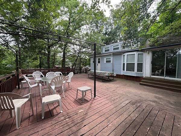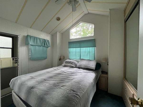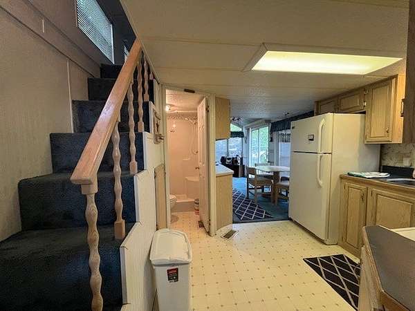 Welcome to Lot 857 within the sought-after Woodsmoke Ranch campground community! This well-maintained property features a 1995 Canterbury Park Model that offers both charm and space. Inside, you'll find a spacious one-bedroom layout along with a huge loft-perfect for additional sleeping accommodations or extra storage. The home boasts high ceilings throughout, enhancing the open and airy atmosphere. The bathroom includes a stand-up shower, and the eat-in kitchen offers ample cabinetry and full-size appliances for easy meal prep. The living room is generously sized, providing a comfortable space to relax or entertain. Step outside to a large deck with a gazebo, ideal for hosting guests or enjoying the peaceful surroundings. A storage shed adds convenience, and the roof is approximately 8 years old. The duct work was redone in 2024, and the unit includes central air conditioning for year-round comfort. Located near Pool 2, this property is situated on a Category 5 lot with yearly dues of 2,749.12, which includes water, electric, garbage, and access to all of Woodsmoke Ranch's fantastic amenities. Woodsmoke Ranch amenities: 2 pools, 2 stocked fishing ponds, 3 pavilions, basketball courts, sand volleyball, gaga ball, bags, 2 playgrounds, RC car racetrack, baseball field, laundromat, convenience store, cafe, horse stables (for rent), adult lounge, Mygrain Saloon, events planned year long and so much more. RV campground community, cannot be a primary residence. Gated community; showings by appointment only. No access without an appointment.