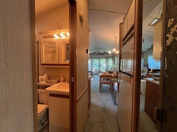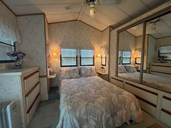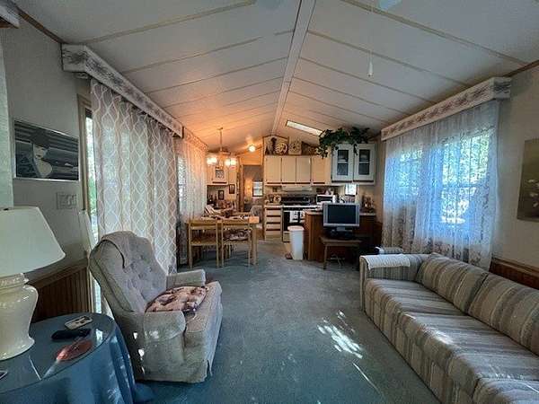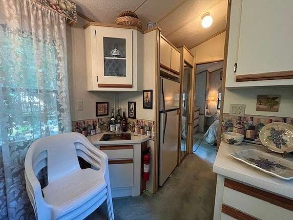 Welcome to Lot 235 in the desirable gated community of Woodsmoke Ranch! This property features a well-maintained 1988 Chariot Park Model situated on a quiet cul-de-sac, offering privacy and peaceful views of the wooded ravine. Inside, you'll find a spacious one-bedroom layout with a closet and built-in dresser on both sides of the room for ample storage. The kitchen includes all appliances, plenty of cabinet space, and a designated table area for dining. The large living room provides a cozy space to relax and enjoy the scenic views. The full bathroom includes a tub/shower combo, and carpeting runs throughout the unit for added comfort. A new water heater was installed in 2025, offering peace of mind for years to come. This is a Category 4 lot with yearly dues of 2,382.44, covering water, electric, garbage, and access to Woodsmoke Ranch's wide range of amenities. Don't miss this rare opportunity to own a quiet retreat in a beautiful campground setting! Woodsmoke Ranch amenities: 2 pools, 2 stocked fishing ponds, 3 pavilions, basketball courts, sand volleyball, gaga ball, bags, 2 playgrounds, RC car racetrack, baseball field, laundromat, convenience store, cafe, horse stables (for rent), adult lounge, Mygrain Saloon, events planned year long and so much more. RV campground community, cannot be a primary residence. Gated community; showings by appointment only. No access without an appointment.