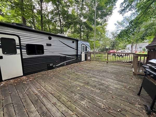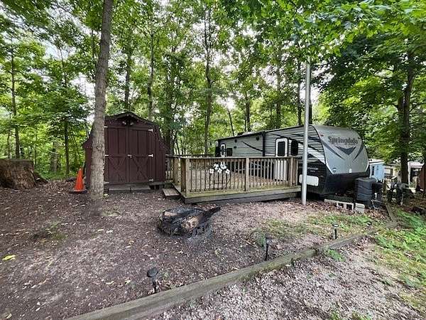 Welcome to Lot 839 in the desirable Woodsmoke Ranch community! Ideally located near Pool 1 and Western Town, this lot offers both convenience and charm. The current travel trailer will be removed, leaving a great opportunity for you to bring in your own park model, travel trailer, or motorhome. A spacious deck is already in place, perfect for outdoor gatherings, and a shed provides extra storage. This is a Category 5 lot with yearly dues of 2,749.12, which cover water, electric, garbage, and access to the campground's many amenities.Woodsmoke Ranch amenities: 2 pools, 2 stocked fishing ponds, 3 pavilions, basketball courts, sand volleyball, gaga ball, bags, 2 playgrounds, RC car racetrack, baseball field, laundromat, convenience store, cafe, horse stables (for rent), adult lounge, Mygrain Saloon, events planned year long and so much more. RV campground community, cannot be a primary residence. Gated community; showings by appointment only. No access without an appointment.