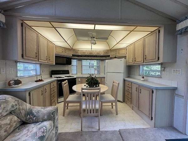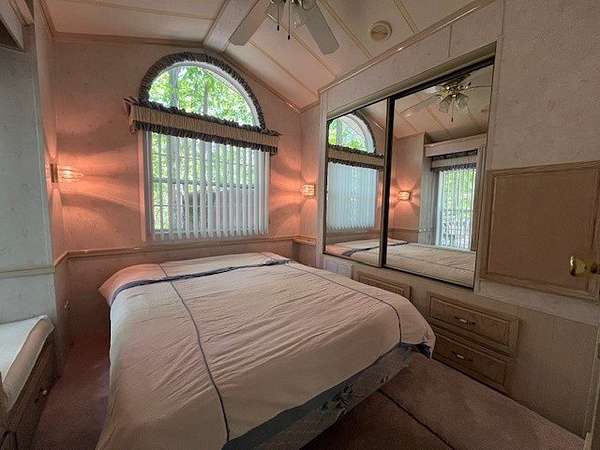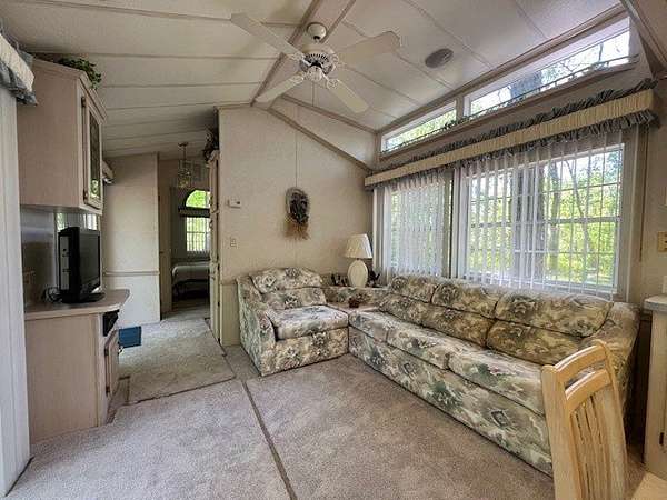 Welcome to Lot 1376 in the desirable campground community of Woodsmoke Ranch in Seneca, IL. This 1994 Chariot Eagle park model offers a peaceful retreat with a spacious front-end kitchen, cozy living room, full bathroom, and a bedroom featuring built-in storage. The property is being sold fully furnished, making it move-in ready for your weekend getaways or extended stays. Enjoy the convenience of a paved driveway and a shed for additional storage. The roof is only 2-3 years old, offering peace of mind for years to come. Located toward the end of a quiet cul-de-sac, this lot backs to open farm fields with no backyard neighbors-perfect for those seeking added privacy and tranquility. Category 5 lot with yearly dues of 2749.12 which includes water, electric, garbage and park amenities. Woodsmoke Ranch amenities: 2 pools, 2 stocked fishing ponds, 3 pavilions, basketball courts, sand volleyball, gaga ball, bags, 2 playgrounds, RC car racetrack, baseball field, laundromat, convenience store, cafe, horse stables (for rent), adult lounge, Mygrain Saloon, events planned year long and so much more. Gated community; showings by appointment only. RV campground community, cannot be a primary residence.