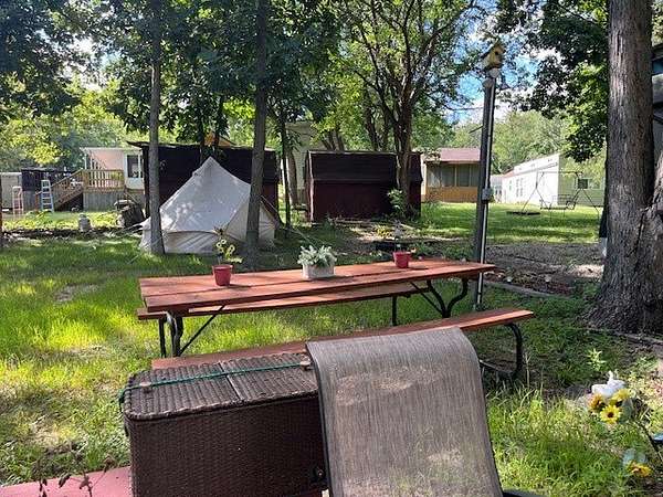 Located within the desirable Woodsmoke Ranch Campground, Lot 554 is ready for your travel trailer, motor home, or park model (current motor home does not stay). This spacious lot offers a long driveway for easy parking, a patio perfect for outdoor gatherings, and a storage shed for added convenience. As a Category 2 lot, the yearly dues of $1,832.43 include water, electric, garbage service, and full use of the community's amenities. Don't miss this opportunity to enjoy all that Woodsmoke Ranch has to offer in a gated, amenity-rich campground setting. Woodsmoke Ranch amenities: 2 pools, 2 stocked fishing ponds, 3 pavilions, basketball courts, sand volleyball, gaga ball, bags, 2 playgrounds, RC car racetrack, baseball field, laundromat, convenience store, cafe, horse stables (for rent), adult lounge, Mygrain Saloon, events planned year long and so much more. RV campground community, cannot be a primary residence. Gated community; showings by appointment only. No access without an appointment.