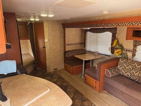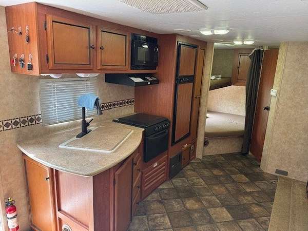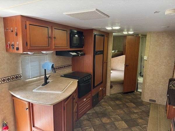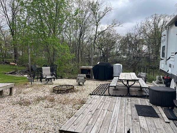 Escape to the tranquility of Woodsmoke Ranch with this well-located lot backing to a peaceful ravine! This price is for the lot only. For an additional $6000 the camper can be included: A 2013 KZ Sportsmen Showstopper travel trailer that comfortably sleeps six, featuring a full-size bedroom and a separate bunk room with two beds-perfect for guests or getaways. The trailer has been well maintained with newer tires and a 2-year-old A/C unit. Outside, enjoy a gravel driveway for easy parking, a shed for extra storage, and a fire pit area ideal for relaxing evenings under the stars. Whether you're seeking a weekend retreat or seasonal escape, this turn-key setup offers a great opportunity to enjoy everything Woodsmoke Ranch has to offer. This is a category 5 lot with yearly dues of 2749.12 which includes electric, water, garbage and all the amenities. Woodsmoke Ranch amenities: 2 pools, 2 stocked fishing ponds, 3 pavilions, basketball courts, sand volleyball, gaga ball, bags, 2 playgrounds, RC car racetrack, baseball field, laundromat, convenience store, cafe, horse stables (for rent), adult lounge, Mygrain Saloon, events planned year long and so much more. Gated community; showings by appointment only. RV campground community, cannot be a primary residence.