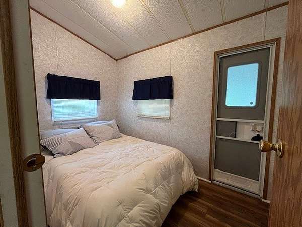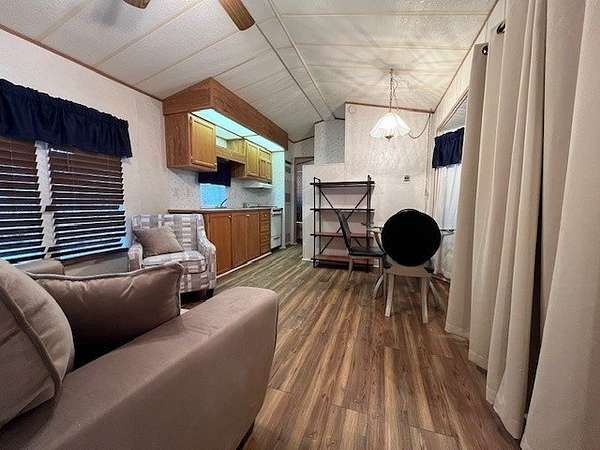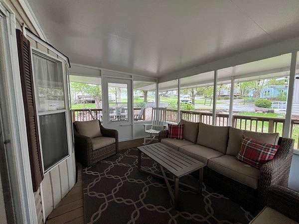 Welcome to your getaway retreat in the gated community of Woodsmoke Ranch! This 1998 Kropf park model on lot 1341 offers 2 bedrooms plus a loft, providing plenty of space for you and your guests. Step inside to find updated wood laminate flooring throughout (installed just 2 years ago), a bay window in the dining area, and a well-appointed kitchen with ample cabinet space and a double sink. Enjoy outdoor living on the spacious entertaining deck, complete with a screened porch (added approx. 6 years ago) that's accessible through sliding glass doors or directly from the deck. The large paved driveway provides plenty of parking, and there's a shed for extra storage. The roof is estimated to be 7-10 years old, and a rented propane tank is already in place. This turnkey property is ready for your weekend escapes or extended stays-just bring your personal items (please note: screened porch furniture is not included). Don't miss this great opportunity to enjoy all that Woodsmoke Ranch has to offer! Category 4 lot with yearly dues of 2301.87 that includes water, electric and garbage. Woodsmoke Ranch amenities: 2 pools, 2 stocked fishing ponds, 3 pavilions, basketball courts, sand volleyball, gaga ball, bags, 2 playgrounds, RC car racetrack, baseball field, laundromat, convenience store, cafe, horse stables (for rent), adult lounge, Mygrain Saloon, events planned year long and so much more. Gated community; showings by appointment only. RV campground community, cannot be a primary residence.