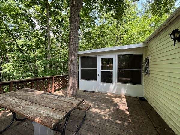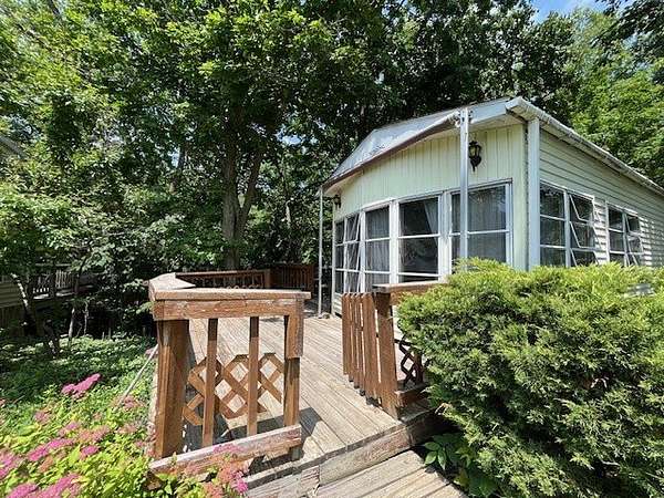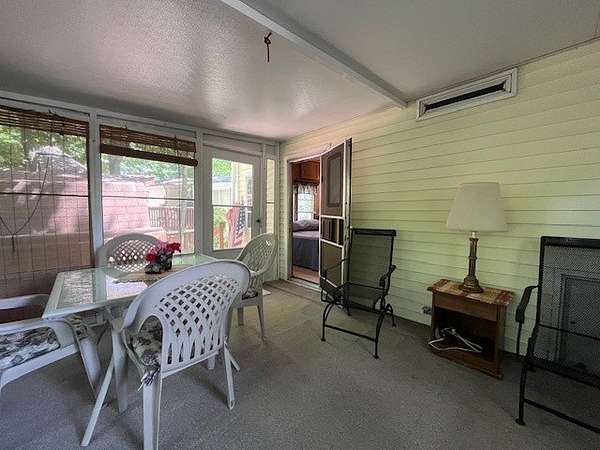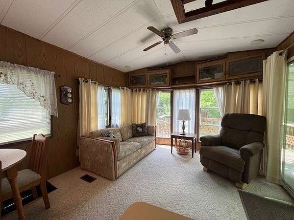 Welcome to Lot 1218 within the beautiful gated community of Woodsmoke Ranch in Seneca, IL. This exquisite lot features a well-maintained 1986 Seebring Park Model in excellent condition. Inside, you'll find a spacious living room with sliding glass doors that lead to a peaceful back deck overlooking the woods. The kitchen offers generous cabinetry, a wood parquet floor, and all appliances stay. There's a cozy dining area, a full bathroom, a large hallway closet for extra storage, and a roomy bedroom with extensive built-ins. The attached screen room provides a shaded space to relax and enjoy the outdoors. The lot itself is beautifully landscaped and includes a unique multi-level deck nestled into the wooded setting-ideal for entertaining or simply soaking in nature. Additional features include a shed and a paved driveway. Fully furnished and move-in ready, this property is a perfect seasonal escape with access to all of Woodsmoke Ranch's top-notch amenities. This is a category 4 lot with yearly dues of 2301.87 which includes water, electric, garbage and park amenities. Woodsmoke Ranch amenities: 2 pools, 2 stocked fishing ponds, 3 pavilions, basketball courts, sand volleyball, gaga ball, bags, 2 playgrounds, RC car racetrack, baseball field, laundromat, convenience store, cafe, horse stables (for rent), adult lounge, Mygrain Saloon, events planned year long and so much more. RV campground community, cannot be a primary residence. Gated community; showings by appointment only. No access without an appointment.