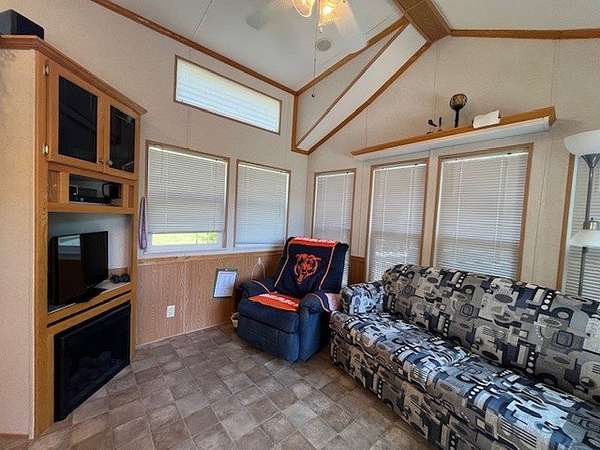 Located in the gated campground community of Woodsmoke Ranch in Seneca, IL, Lot 141 features a 2008 Heritage Park Model offering both comfort and a serene wooded setting. This fully furnished unit includes one bedroom, high ceilings throughout, a very large kitchen with ample cabinets and counter space, and a spacious living room complete with an electric fireplace. Enjoy the peaceful ravine views from the attached screen room-added 10 years ago-which sits off the back deck, perfect for relaxing or entertaining. The home is equipped with central air conditioning and a furnace, both in great working condition. Additional features include a long paved driveway and a quiet location on a cul-de-sac. Lot 140, located right next door, is also available, presenting the opportunity for a rare side-by-side packaged deal. This is a Category 4 lot with yearly dues of 2,301.87 which includes water, electric, garbage and park amenities. Woodsmoke Ranch amenities: 2 pools, 2 stocked fishing ponds, 3 pavilions, basketball courts, sand volleyball, gaga ball, bags, 2 playgrounds, RC car racetrack, baseball field, laundromat, convenience store, cafe, horse stables (for rent), adult lounge, Mygrain Saloon, events planned year long and so much more. RV campground community, cannot be a primary residence. Gated community; showings by appointment only. No access without an appointment.