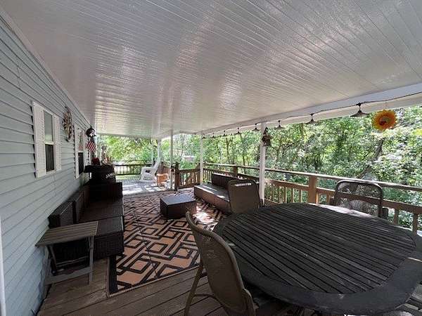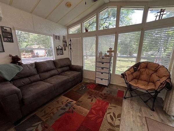 Located in the gated community of Woodsmoke Ranch in Seneca, IL, this 1996 Elkhart Park Model on Lot 577 offers comfort, functionality, and plenty of updates. Inside you'll find a primary bedroom with closet and built-ins, a second bedroom featuring a 2-bed bunk setup with built-in storage and wall sconces, plus a loft that provides even more sleeping space. The home boasts high ceilings with large windows for natural light, a spacious kitchen, and a roomy living room with a nearly new sleeper sofa. Recent upgrades include new bedroom carpet, upgraded kitchen lighting, new vinyl flooring, a new living room ceiling fan/light, a mini-split heating and A/C system, rebuilt deck frame, leveled shed, leveled Park Model with new shoring, and front gutter guards. Almost all furniture and kitchenware are included, making this a turnkey retreat. Outdoor living is just as inviting with a large fully covered deck, an additional uncovered lower deck, and a fire pit set in a gravel area. This is a Category 3 lot with yearly dues of $1,947.62, which cover water, electric, garbage, and access to all of Woodsmoke Ranch's amenities. Woodsmoke Ranch amenities: 2 pools, 2 stocked fishing ponds, 3 pavilions, basketball courts, sand volleyball, gaga ball, bags, 2 playgrounds, RC car racetrack, baseball field, laundromat, convenience store, cafe, horse stables (for rent), adult lounge, Mygrain Saloon, events planned year long and so much more. RV campground community, cannot be a primary residence. Gated community; showings by appointment only. No access without an appointment.