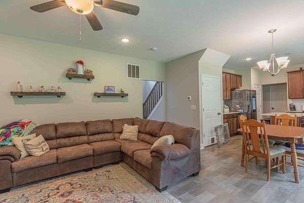 - Ceiling Fan(s), Chandelier, Granite Counters, High Ceilings, High Speed Internet, Kitchen Island, Open Floorplan, Pantry, Recessed Lighting, Walk-In Closet(s)