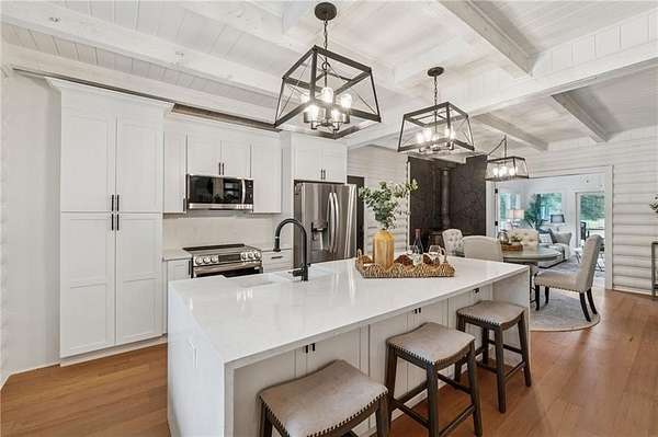 Stunning Updated Farm Cabin with Brand-New Roof on 5 Acres in Forsyth County! Located in a USDA-approved area, this exceptional property presents a rare opportunity for buyers seeking privacy, versatility, and future potential-including the ability to build an additional home. Welcome to this beautifully renovated and meticulously maintained farm cabin, where modern upgrades meet timeless rustic charm. Thoughtfully updated throughout, the home features a brand-new kitchen, new flooring, fresh interior and exterior paint, and fully renovated, spa-inspired bathrooms-creating a move-in-ready experience with elevated style and comfort. Set on 5 picturesque acres, the property offers a perfect blend of peaceful countryside living and functional farm amenities. The front yard showcases beautiful landscaping, a riding arena, and a scenic front deck ideal for enjoying tranquil mornings. The back acreage features cleared, graded, and fully fenced pasture-perfect for horses, expansion, or future development. Zoning allows for the potential construction of up to two additional homes, making this an outstanding opportunity for multigenerational living, investment, or creating a private family compound. Inside, the home welcomes you with a warm and inviting atmosphere. The main level includes a spacious primary suite, an open-concept living area designed for entertaining, and a bright sunroom overlooking the serene backyard. The chef's kitchen flows seamlessly into the living space, highlighted by natural light, exposed beams, and charming architectural details. Upstairs offers two loft-style bedrooms and a full bath, while the basement provides ample space for a workshop along with a two-car garage. Outdoor features are equally impressive, including a covered porch, handcrafted chicken coop, large round pen, two horse stables, a barn, and fully fenced areas-truly a horse lover's dream. With low property taxes, access to top-rated schools, and a prime location just minutes from The Collection at Forsyth, Cumming City Center, Lake Lanier, shopping, dining, and outdoor recreation, this property delivers both convenience and lifestyle. Properties offering this level of privacy, acreage, upgrades, and future potential in Forsyth County are extremely limited. Schedule your showing today-this one will not last long.