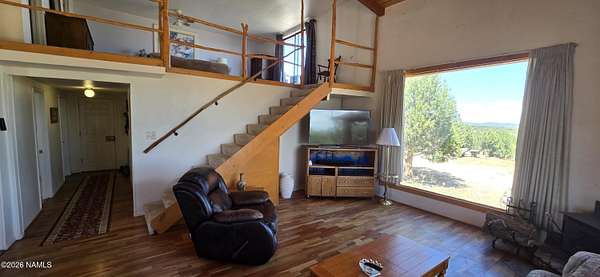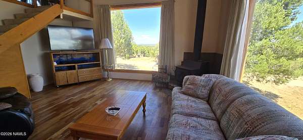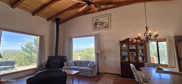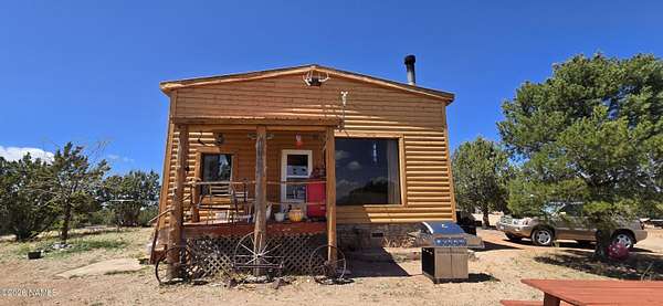 Discover Your Own Private Escape in Juniperwood Ranch! Tucked away on more than 10 pristine acres, this beautiful property offers the perfect balance of privacy, natural beauty, and wide-open space. Follow the scenic, winding driveway through a peaceful landscape filled with mature trees until you arrive at your secluded retreat--one of the most desirable parcels in the area, with no HOA restrictions. Two-bedroom, two-bath cabin captures stunning panoramic views right from the living room, creating a warm and inviting space where you can truly relax and connect with nature. The property also features 1,670-sq-ft detached barn with a loft, providing abundant space for equipment, recreational vehicles, a workshop, or even the potential for additional living living or guest space. Water storage is well-planned with a 3,000-gallon underground water tank along with a 2,500-gallon above-ground cistern, offering dependable water capacity for off-grid or rural living. Enjoy breathtaking mountain views, including the iconic San Francisco Peaks, along with a beautiful natural landscape filled with mature trees and open skies. Despite the peaceful seclusion, the property remains easily accessible--no 4x4 required, located just over two miles from paved roads and conveniently close to a local water station. The buyer need to verify. Contact us today for more information. The property sold "As Is".